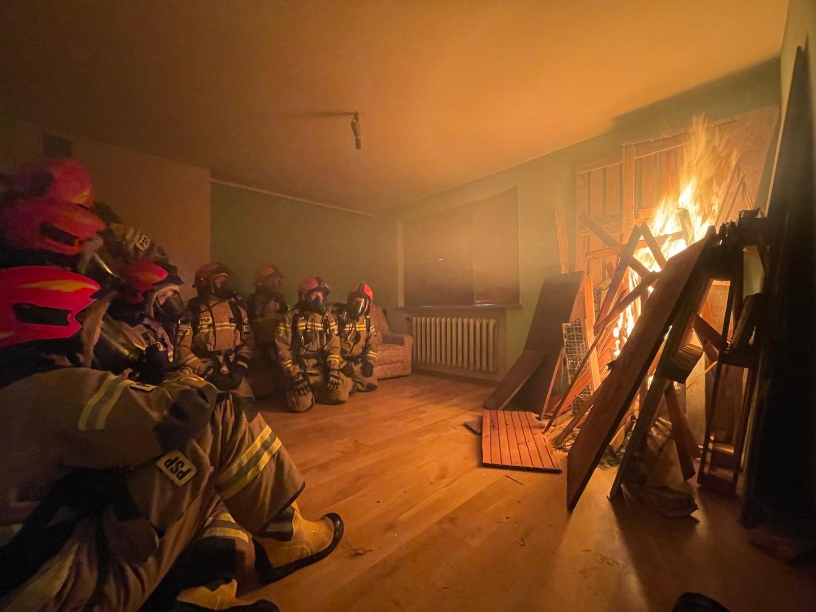 Ćwiczenia brzozowskich strażaków z zakresu gaszenia pożarów wewnętrznych