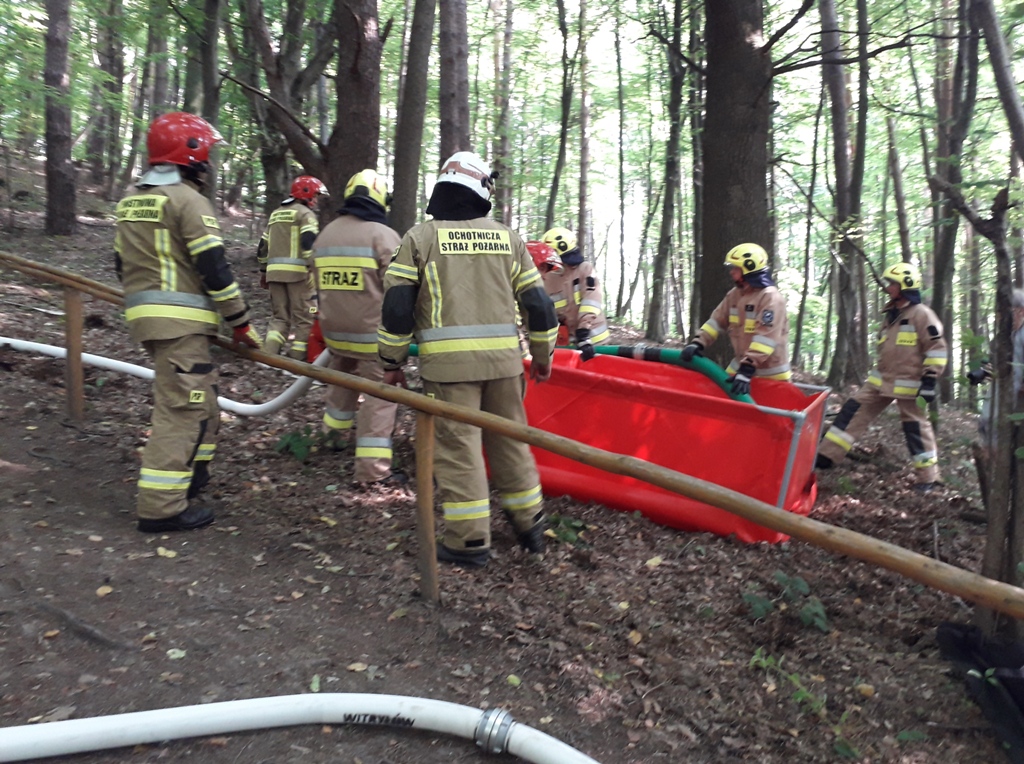 Ćwiczenia gaśnicze na wzgórzu Dębnik w Uluczu