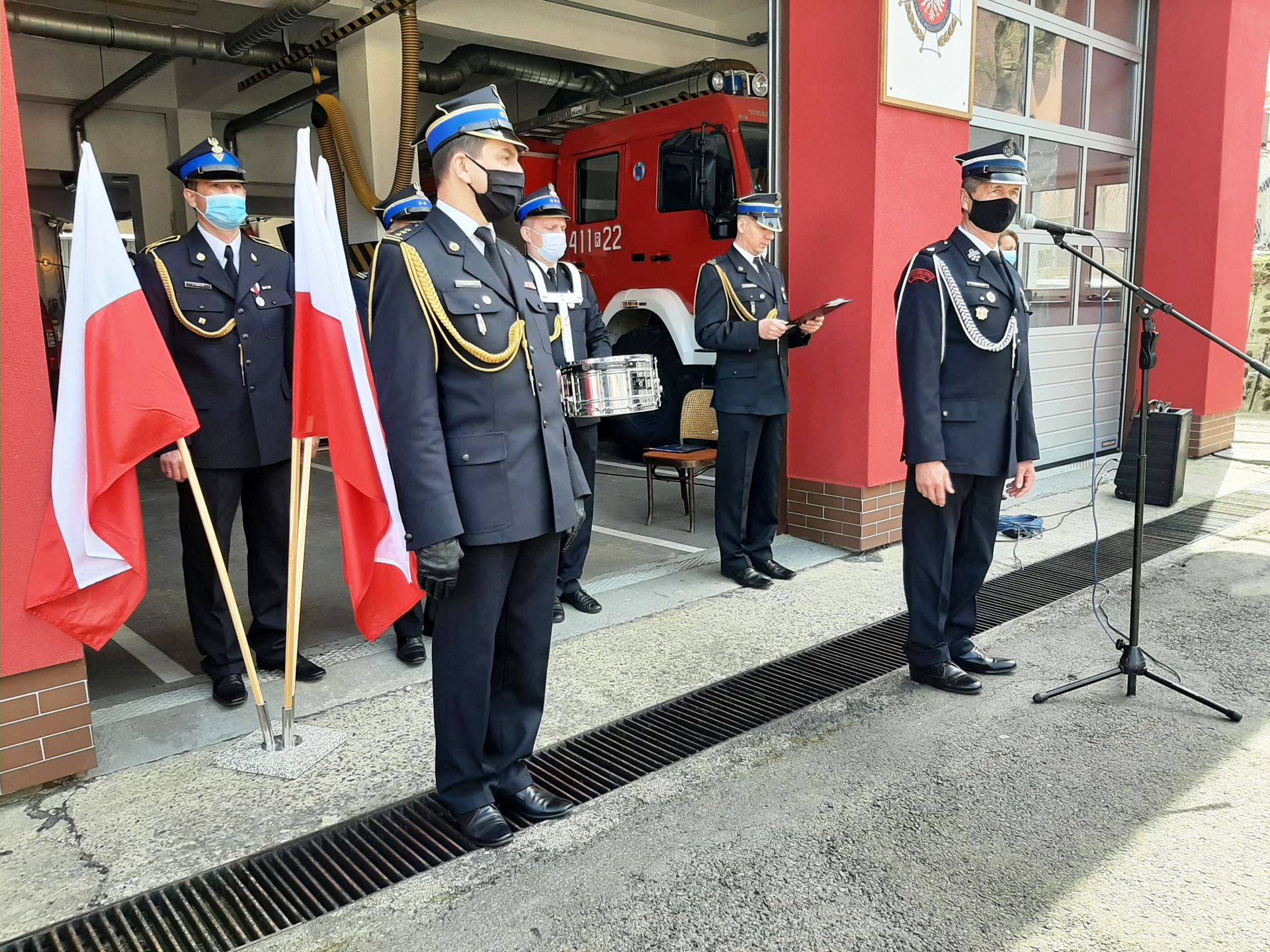 Dowódca uroczystości kpt. Dawid Nowak złożył Komendantowi Powiatowemu PSP w Brzozowie st. bryg. mgr inż. Krzysztofowi Folcie, meldunek o gotowości do uroczystości, po którym uroczyście podniesiono flagę państwową na maszt. Następnie Komendant Powiatowy PSP w Brzozowie przywitał zebranych, podsumował ostatni rok służby, przedstawił plany na przyszłość i podziękował wszystkim strażakom zawodowym oraz ochotnikom za pełnioną służbę na rzecz lokalnego społeczeństwa. Podczas zbiórki wręczono akty nominacyjne na wyższe stopnie służbowe oraz odczytano nadesłane okolicznościowe życzenia z okazji Dnia Strażaka. Szczególne wyróżnienie za służbę pożarniczą otrzymał asp. sztab. Adam Toczek, którego Komendant Główny PSP nagrodził okolicznościowym dyplomem. Natomiast awans na pierwszy stopień oficerski młodszego kapitana otrzymał asp. Rafał Ziemiański, który ukończył studia inżynierskie w SGSP. Komendant Powiatowy PSP w Brzozowie złożył również życzenia z okazji obchodzonego święta.