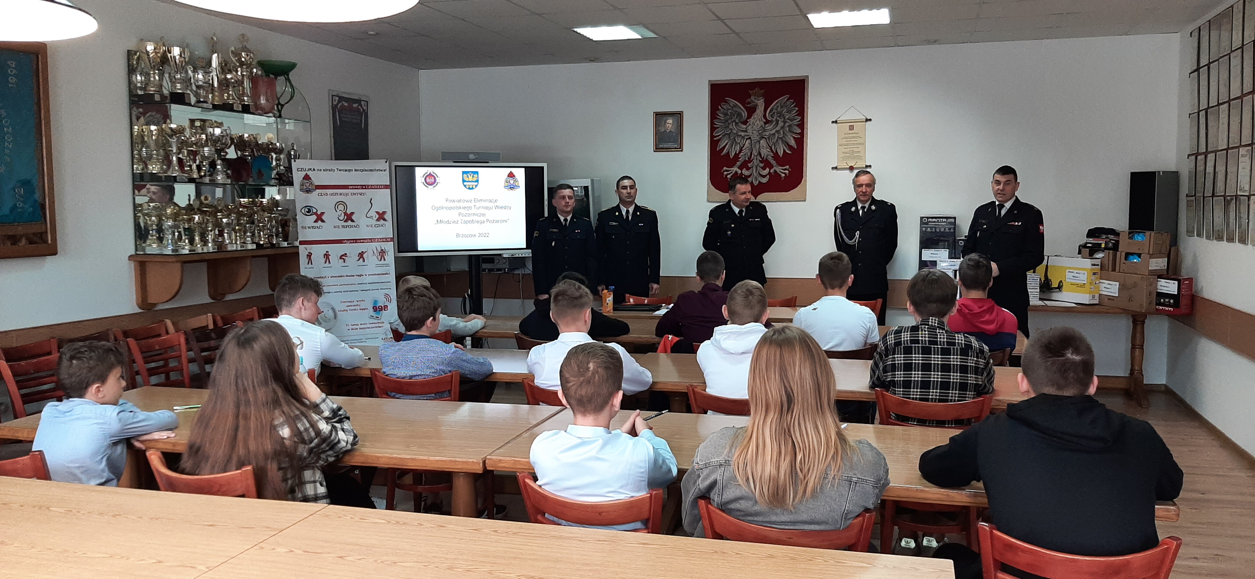 28.04.2022 roku w Komendzie Powiatowej Państwowej Straży Pożarnej w Brzozowie odbyły się eliminacje powiatowe Ogólnopolskiego Turnieju Wiedzy Pożarniczej „Młodzież Zapobiega Pożarom”. Do etapu powiatowego zakwalifikowanych zostało 15 uczestników wyłonionych podczas etapów gminnych przeprowadzonych w marcu bieżącego roku. W tym etapie turnieju wzięli również udział przedstawiciele grupy III – szkół ponadpodstawowych. Współorganizatorem turnieju był Zarząd Oddziału Powiatowego Związku OSP RP w Brzozowie reprezentowany przez Prezesa Zarządu dh. Mariusza Bieńczaka.