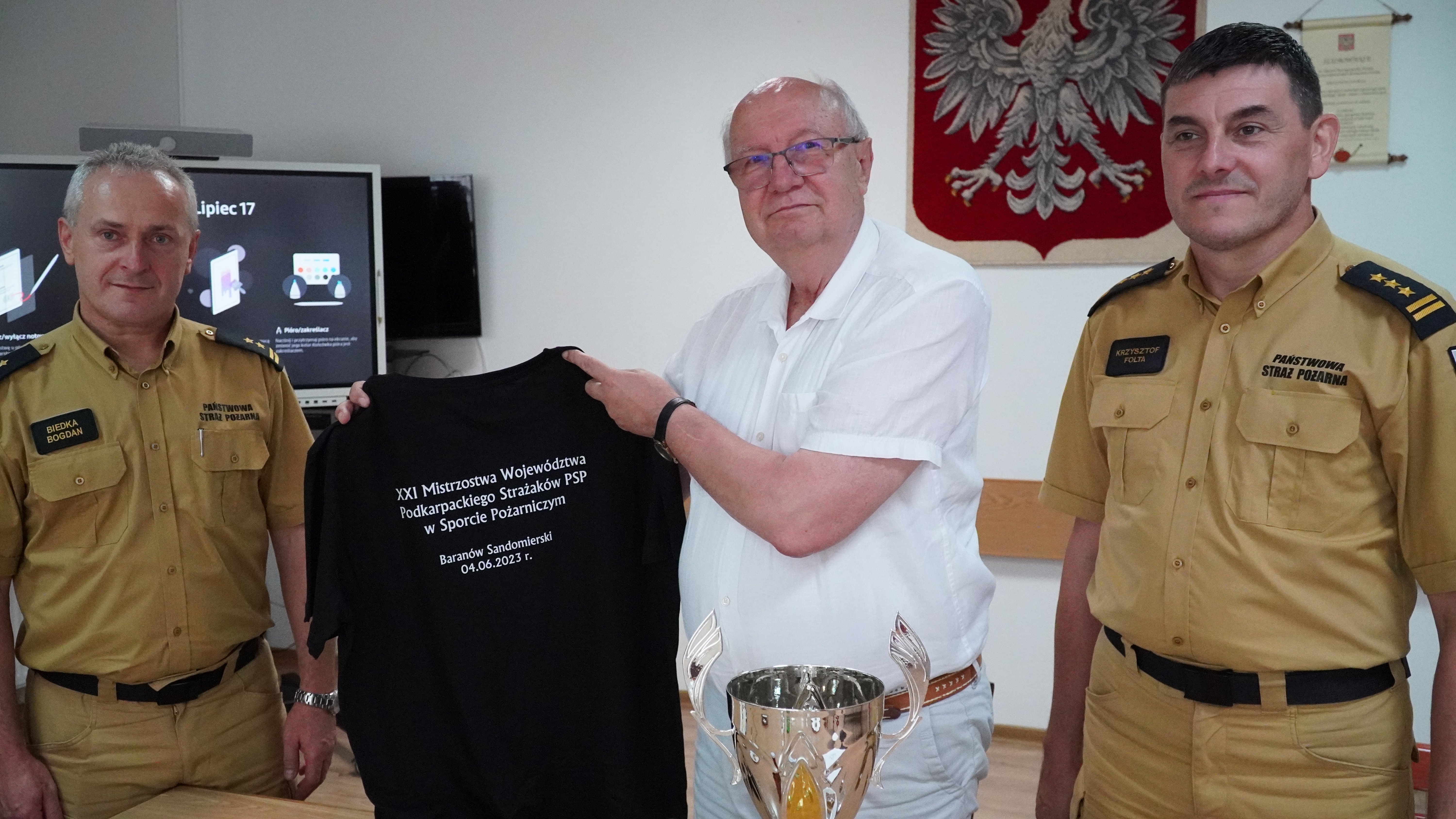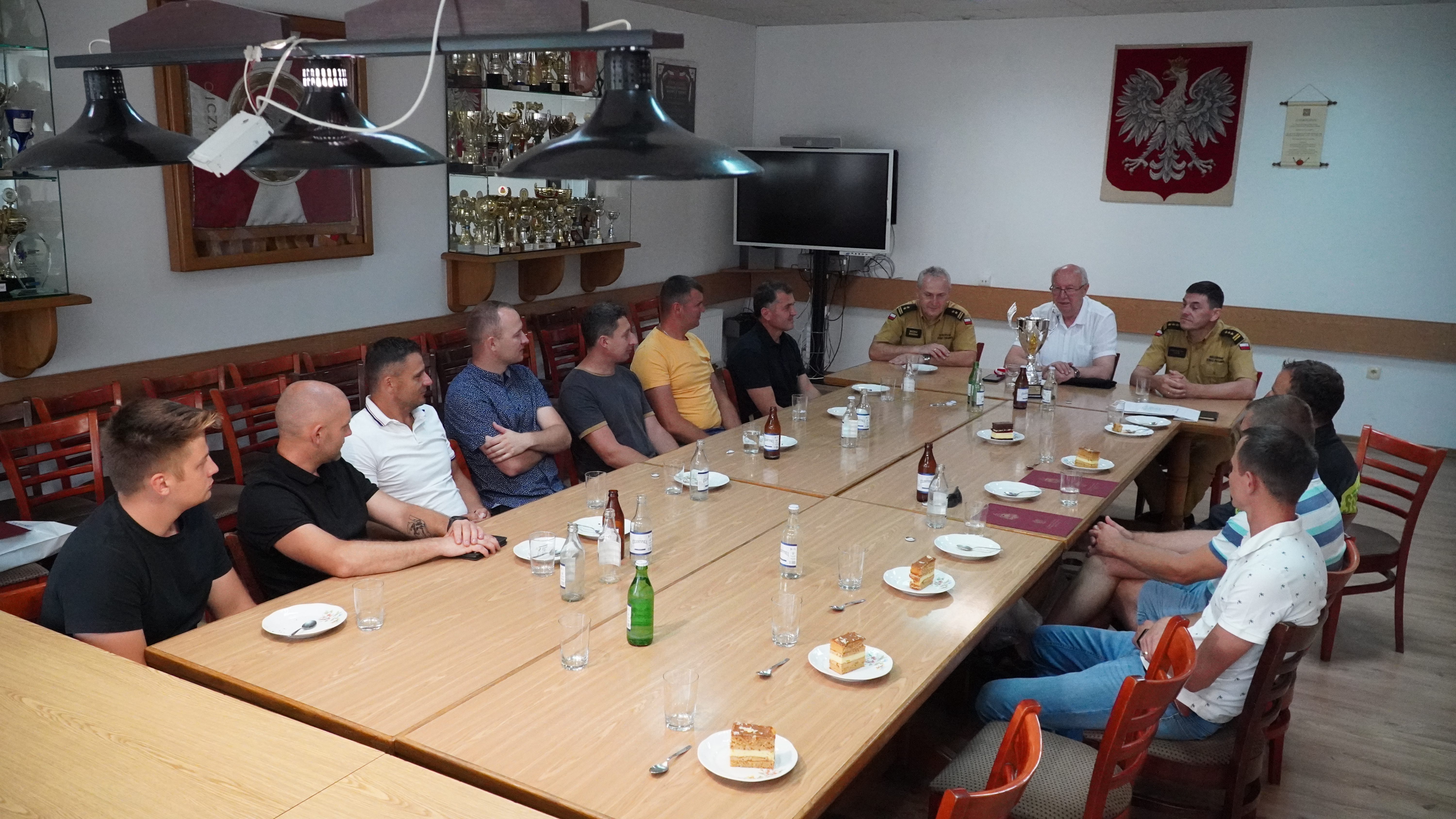 17 lipca br. w Komendzie Powiatowej PSP w Brzozowie odbyło się spotkanie podsumowujące występ strażaków (sportowców) Komendy Powiatowej Państwowej Straży Pożarnej w Brzozowie w XXI Mistrzostwach Województwa Podkarpackiego w Sporcie Pożarniczym. W spotkaniu udział wzięli: starosta brzozowski Zdzisław Szmyd, komendant powiatowy PSP w Brzozowie st. bryg. Krzysztof Folta wraz z zastępcą bryg. Bogdanem Biedką oraz strażacy biorący udział w Mistrzostwach Województwa Podkarpackiego w Sporcie Pożarniczym. Zawody odbyły się 31 maja w Rzeszowie i 4 czerwca w Baranowie Sandomierskim, na których reprezentacja KP PSP w Brzozowie zajęła bardzo dobre II miejsce w klasyfikacji generalnej i zdobyła wicemistrzostwo województwa. Ponadto kpt. Wojciech Haduch zdobył mistrzostwo województwa w pożarniczym torze przeszkód 100 m osiągając historyczny sukces brzozowskich strażaków. Starosta pogratulował zawodnikom osiągniętego wyniku i przekazał strażakom nagrody rzeczowe, a komendant powiatowy PSP w Brzozowie wręczył staroście pamiątkowy medal wicemistrzostwa województwa podkarpackiego strażaków PSP w Sporcie Pożarniczym.