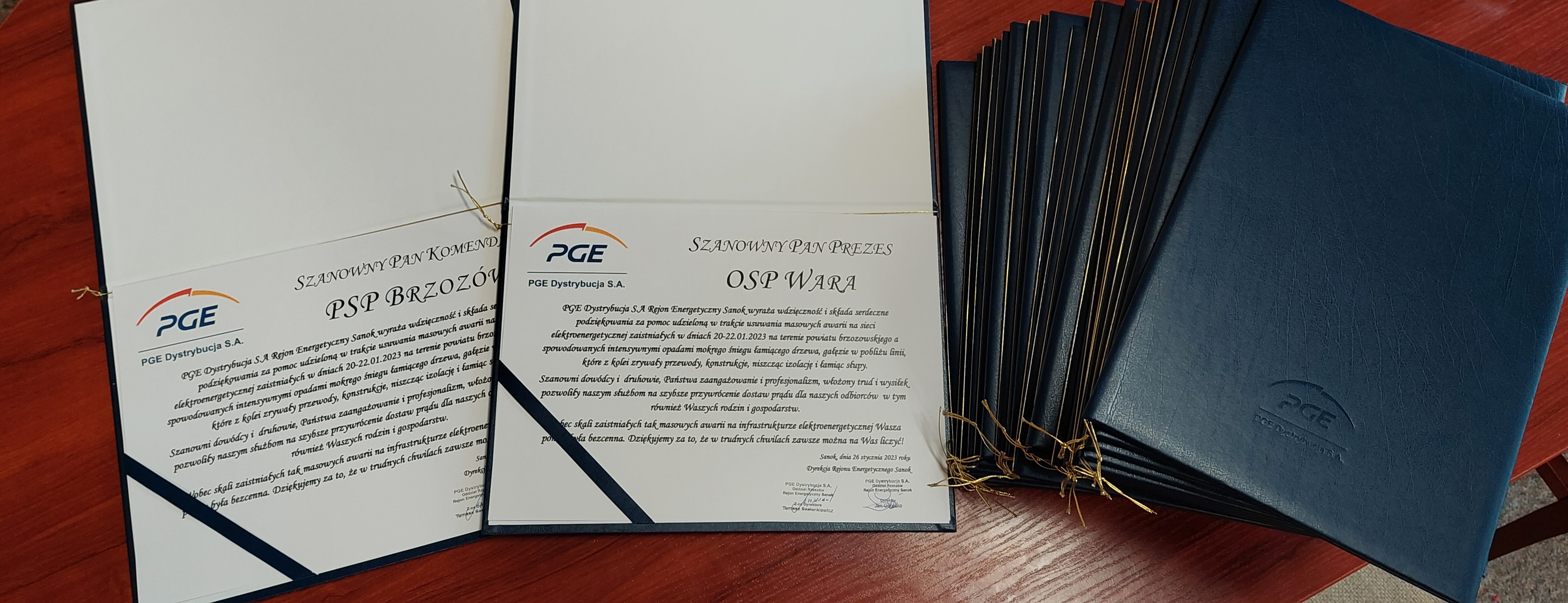 Podziękowanie od PGE Dystrybucja S.A. za pomoc strażaków