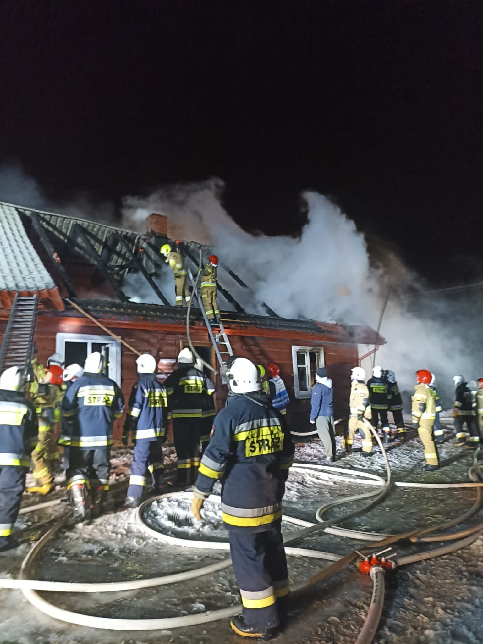 2 lutego 2022 r. około godziny 21.30 zauważono pożar w drewnianym budynku mieszkalno-gospodarczym w Trześniowie, pow. brzozowski. W momencie dojazdu pierwszej jednostki Ochotniczej Straży Pożarnej w Trześniowie, pożarem objęty był dach budynku a wewnątrz występowało silne zadymienie. Strażacy uzyskali informację, że w budynku może przebywać jego właścicielka. Zabezpieczyli teren działań i rozpoczęli akcję gaszenia budynku z równoczesnym przeszukiwaniem pomieszczeń. Zlokalizowali nieprzytomną kobietę leżącą na łóżku, ewakuowali ja na zewnątrz i rozpoczęli przywracanie funkcji życiowych z wykorzystaniem AED. Pomimo podjętych działań i pomocy zespołu Państwowego Ratownictwa Medycznego nie udało się uratować życia tej osobie. Kontynuowana akcja gaśnicza pozwoliła ocalić część obiektu i obronić przed skutkami ognia dwa sąsiednie budynki.