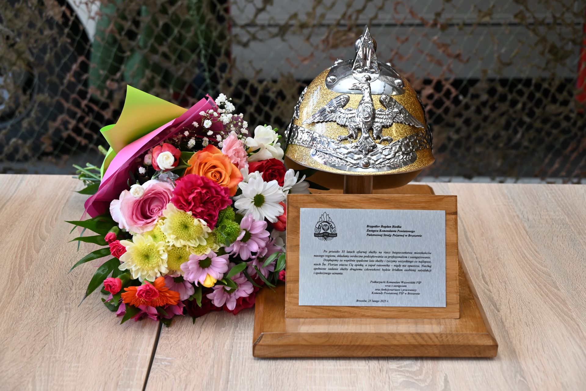 Po przeszło 35 letniej służbie w Państwowej Straży Pożarnej, w obecności strażaków i pracowników cywilnych oraz zaproszonych gości brygadier Bogdan Biedka uroczyście pożegnał się ze sztandarem Komendy Powiatowej PSP w Brzozowie oraz złożył meldunek o zakończeniu służby.