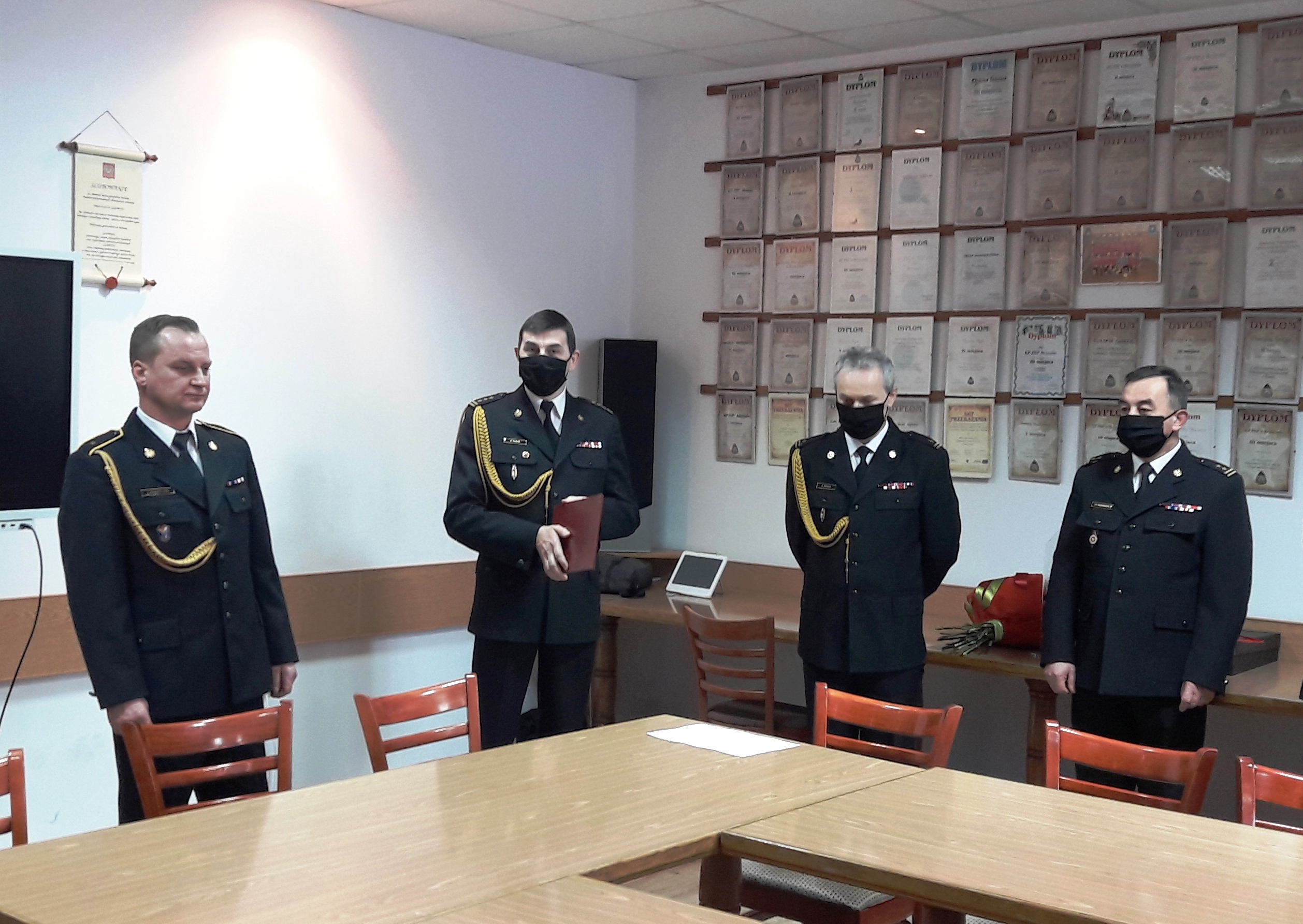 Odchodzącego strażaka pożegnał Komendant Powiatowy Państwowej Straży Pożarnej w Brzozowie – st. bryg. mgr inż. Krzysztof Folta w imieniu funkcjonariuszy i pracowników cywilnych tut. komendy. W trakcie uroczystości przedstawiono przebieg Jego kariery zawodowej, złożono podziękowania za wieloletnią służbę, wręczono okolicznościowy dyplom, kwiaty oraz pamiątkową statuetkę z wizerunkiem Św. Floriana. Wspominając naszą wspólną służbę, pragniemy tą drogą złożyć Ci serdeczne podziękowania za wszystkie lata, które dane nam było razem pracować na rzecz ochrony przeciwpożarowej.