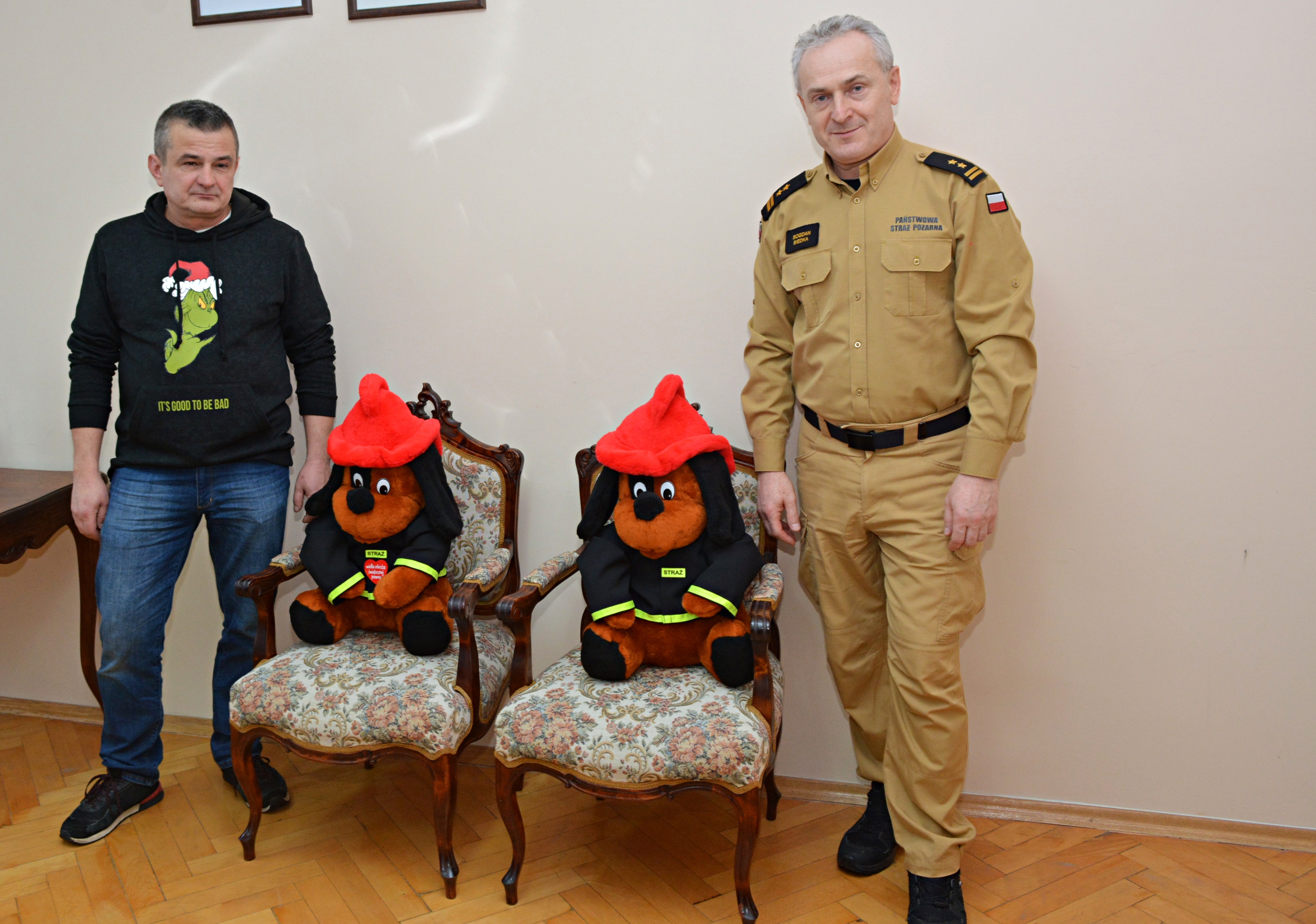 Kierownictwo Komendy Powiatowej PSP w Brzozowie w ramach udziału w finale Wielkiej Orkiestry Świątecznej Pomocy ufundowało maskotki strażackie tzw. „Żarki”. Zostaną one wystawione na licytacje do dwóch sztabów zorganizowanych na terenie powiatu brzozowskiego w miejscowościach Wara i Dydnia. Oficjalnego przekazania dokonał zastępca komendanta powiatowego PSP w Brzozowie bryg. Bogdan Biedka w obecności wójta gminy Dydnia Pani Alicji Pocałuń oraz koordynatora sztabu WOŚP w Dydni Pana Wojciecha Wojnara i dyrektora Gminnego Ośrodka Kultury Bibliotek Promocji i Wypoczynku w Dydni Pana Rafała Czopora.