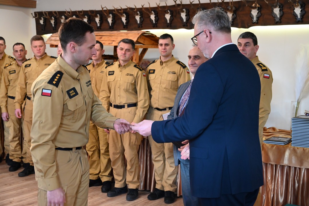 Starosta wraz komendantem powiatowym PSP podziękowali i wręczyli pamiątkowe albumy wraz z listami gratulacyjnymi za heroiczną akcję uratowania mężczyzny oraz podziękowali za osiągnięty po raz pierwszy w historii brzozowskiej komendy sukces sportowy strażaków.