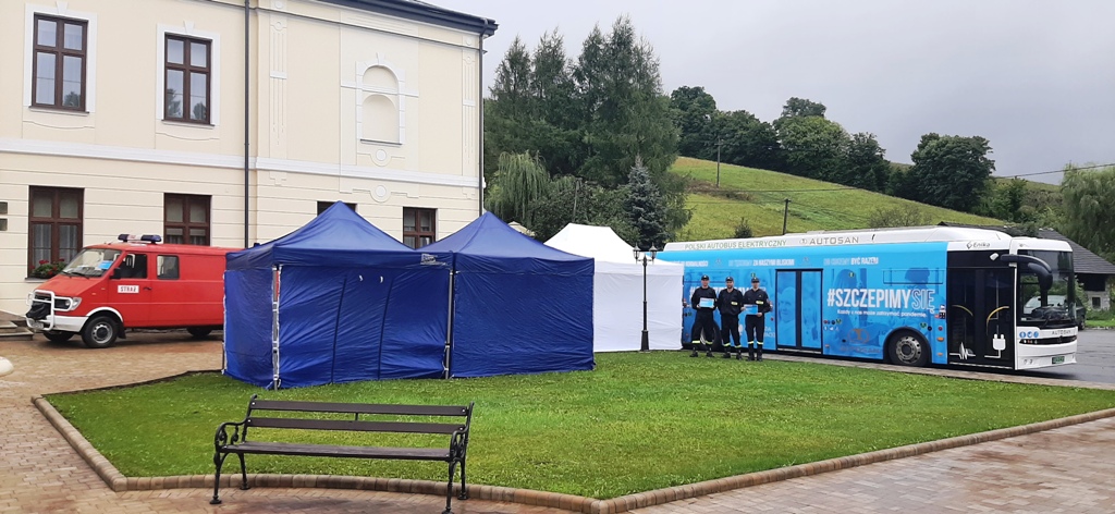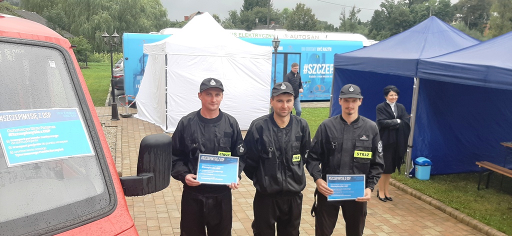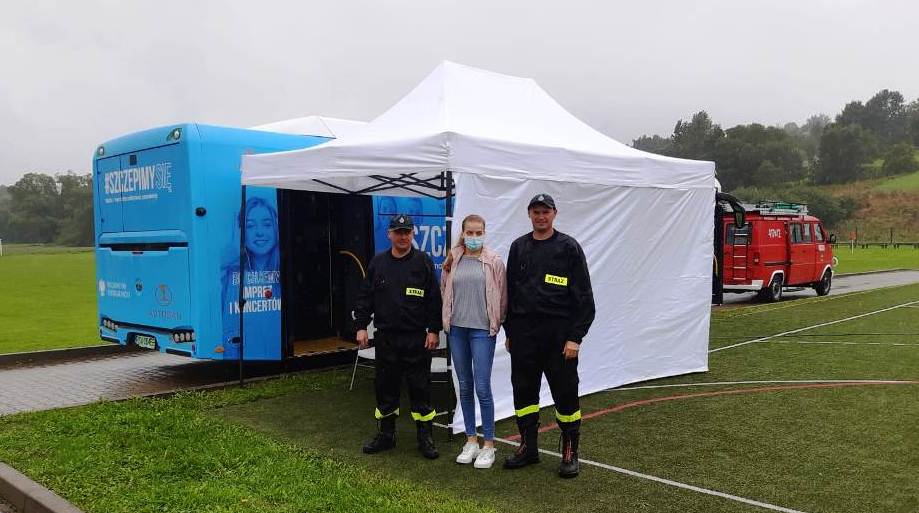 Druhowie z OSP w Jabłonce aktywnie pomagali w tej akcji szczepień w Dydni a druhowie z OSP w Domaradzu Górze wspierali pracę Szczepionkobusa w Golcowej.