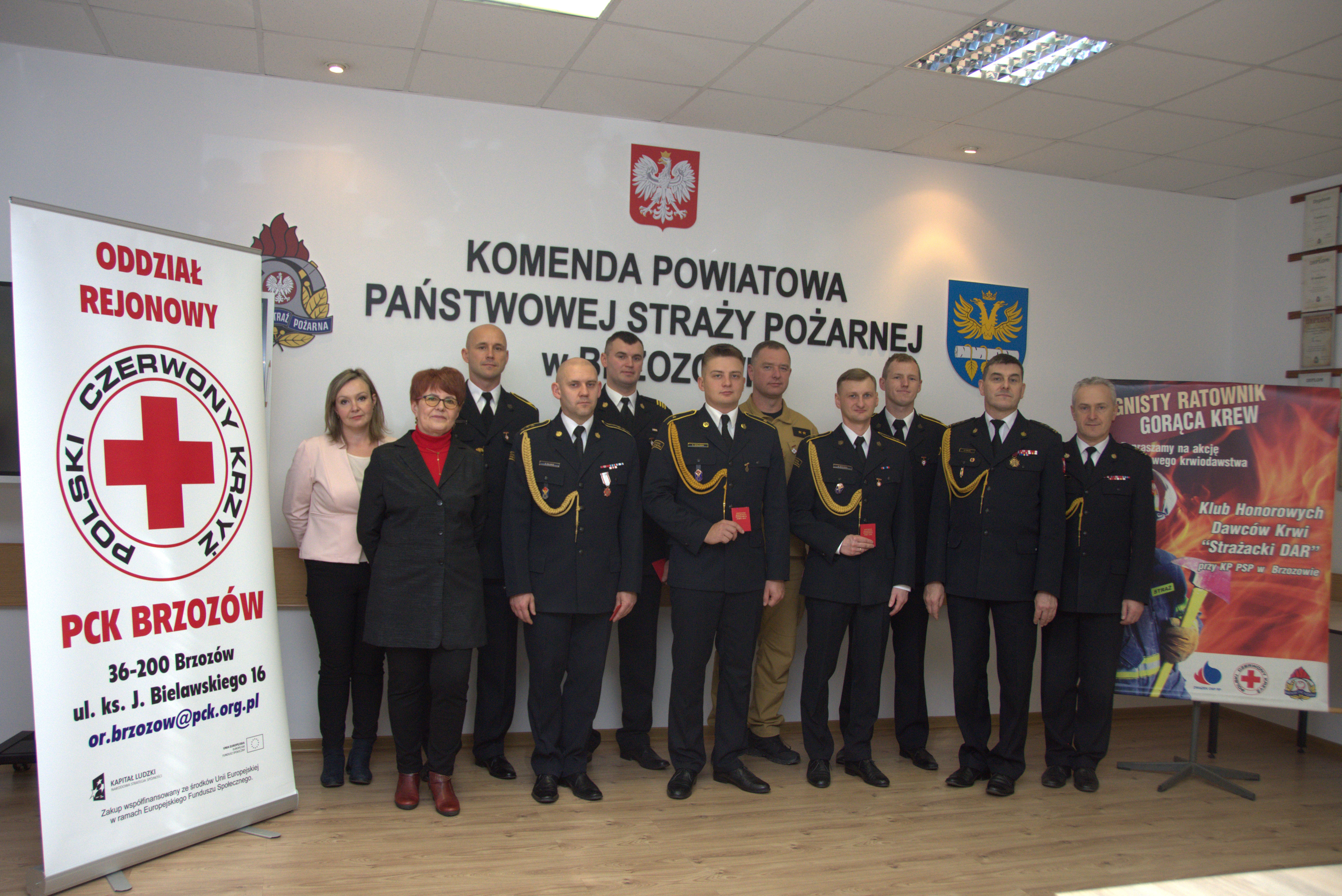 23 listopada 2023r. w świetlicy Komendy Powiatowej Państwowej Straży Pożarnej w Brzozowie odbyło się uroczyste wręczenie odznaczeń dla członków klubu Honorowych Dawców Krwi „Strażacki Dar”, działającego przy tut. komendzie, z okazji Dnia Honorowego Krwiodawstwa Polskiego Czerwonego Krzyża. Wręczenia odznaczeń dokonała prezes Oddziału Rejonowego PCK w Brzozowie Pani Danuta Gwizdała, w obecności komendanta powiatowego PSP w Brzozowie st. bryg. Krzysztofa Folty oraz jego zastępcy bryg. Bogdana Biedki.