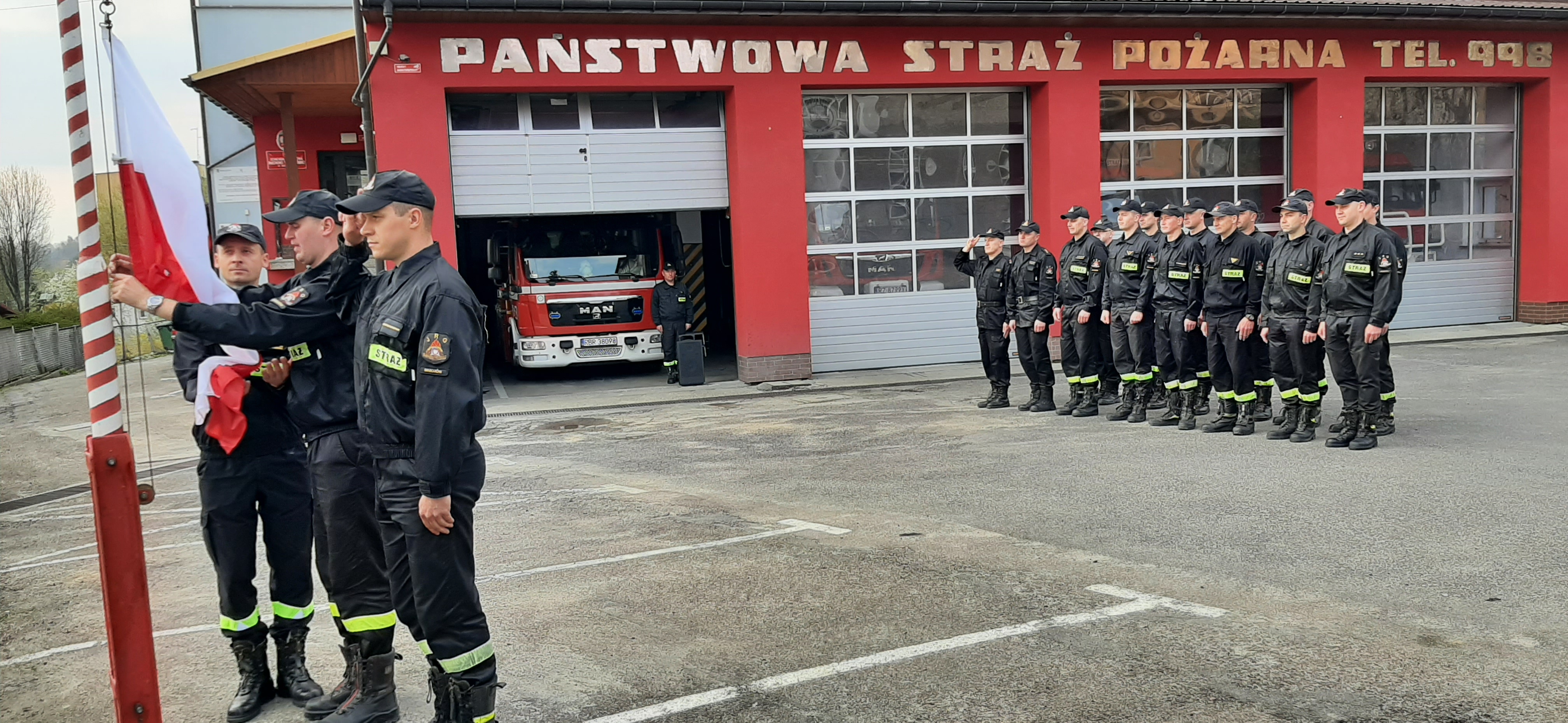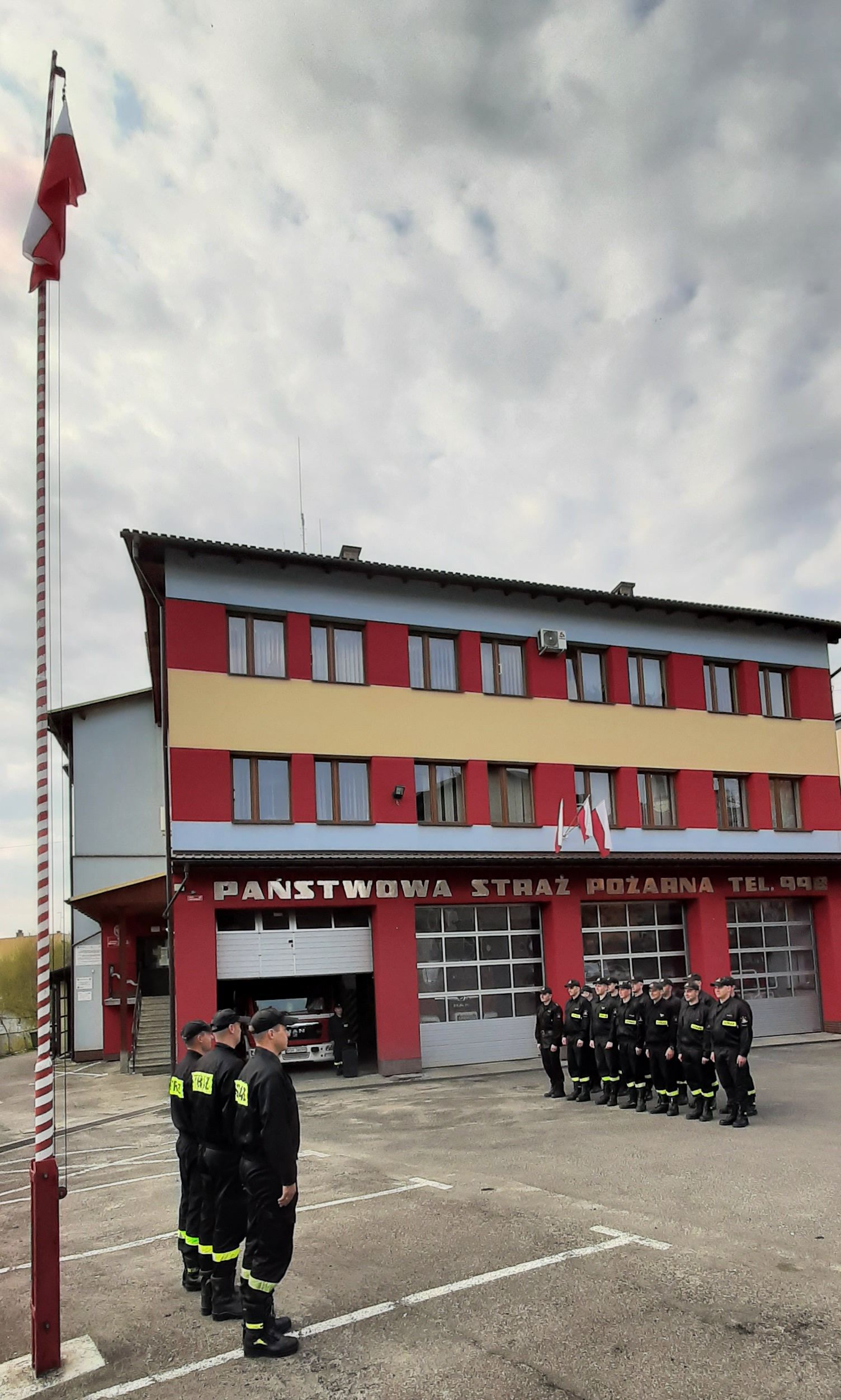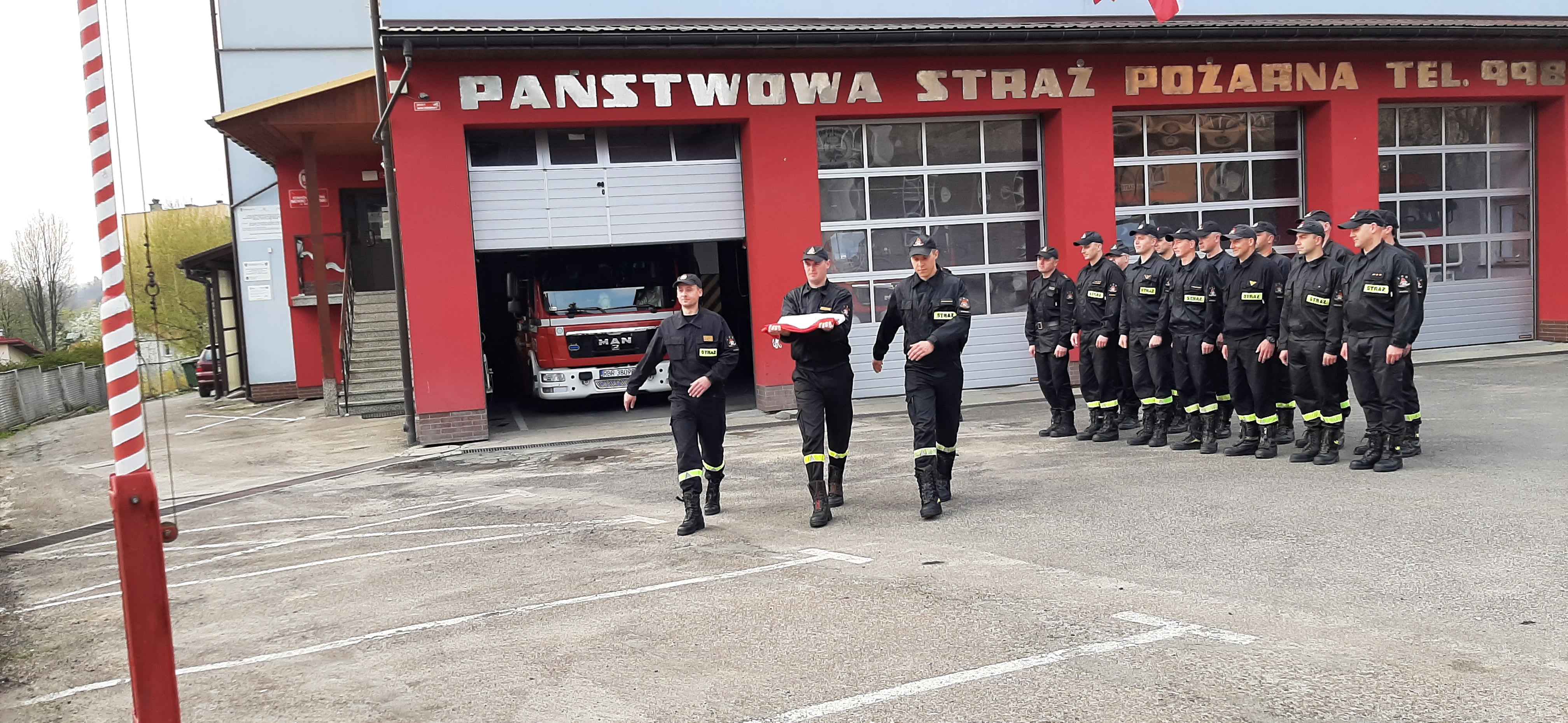 Uroczysty apel z okazji Dnia Flagi RP w KP PSP w Brzozowie