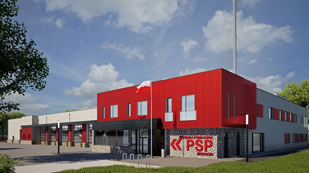 Obiekt składał się będzie z dwóch części: garażowej z zapleczem magazynowo - technicznym oraz administracyjno-biurowo-socjalnej. Część garażowa to budynek jednokondygnacyjny, z członem 2-kondygnacyjnym magazynowo – warsztatowym. Część administracyjno-biurowa to obiekt o dwóch kondygnacjach nadziemnych. Na parterze budynku usytuowano Jednostkę Ratowniczo-Gaśniczą, zaś na piętrze- część administracyjno-biurową komendy. Obiekt wyposażony będzie w place manewrowe i stanowiska postojowe dla pojazdów.