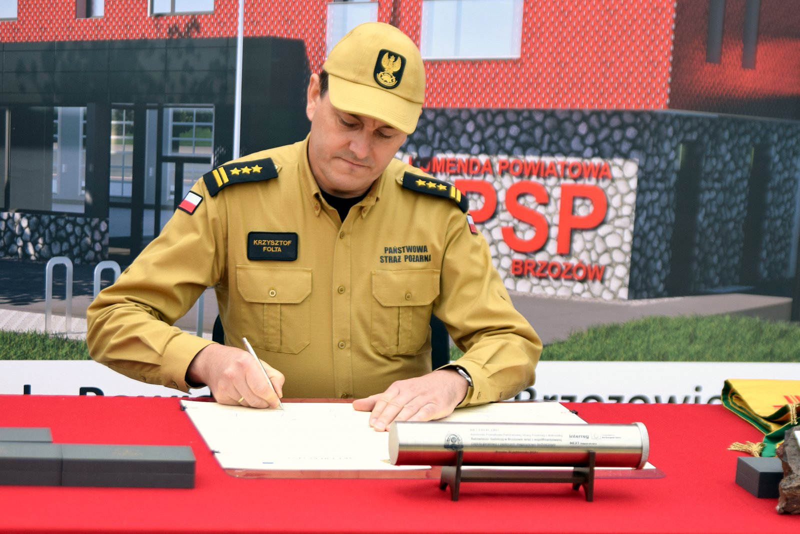 W myśl preambuły aktu: „Jako, że pamięć rzeczy ludzkich szybko przemija, przeto słusznym jest zwyczaj utrwalania na piśmie ważniejszych zdarzeń, aby przekazać ich znaczenie następnym pokoleniom(…)” dokument został sygnowany przez wojewodę podkarpackiego Teresę Kubas-Hul, zastępcę komendanta głównego PSP st. bryg. Grzegorza Szyszko, przewodniczącego Sejmiku Województwa Podkarpackiego Jerzego Borcza, metropolitę przemyskiego ks. abp. Adama Szala, podkarpackiego komendanta wojewódzkiego PSP st. bryg. Tomasza Barana, starostę brzozowskiego Jacka Adamskiego, burmistrza Brzozowa Szymona Stapińskiego, komendanta powiatowego PSP w Brzozowie st. bryg. Krzysztofa Foltę oraz prezesa zarządu „TEXOM” Sp. Z o. o. Krystiana Wosia, a następnie zamknięty w tubie i wmurowany w fundamenty obiektu.
