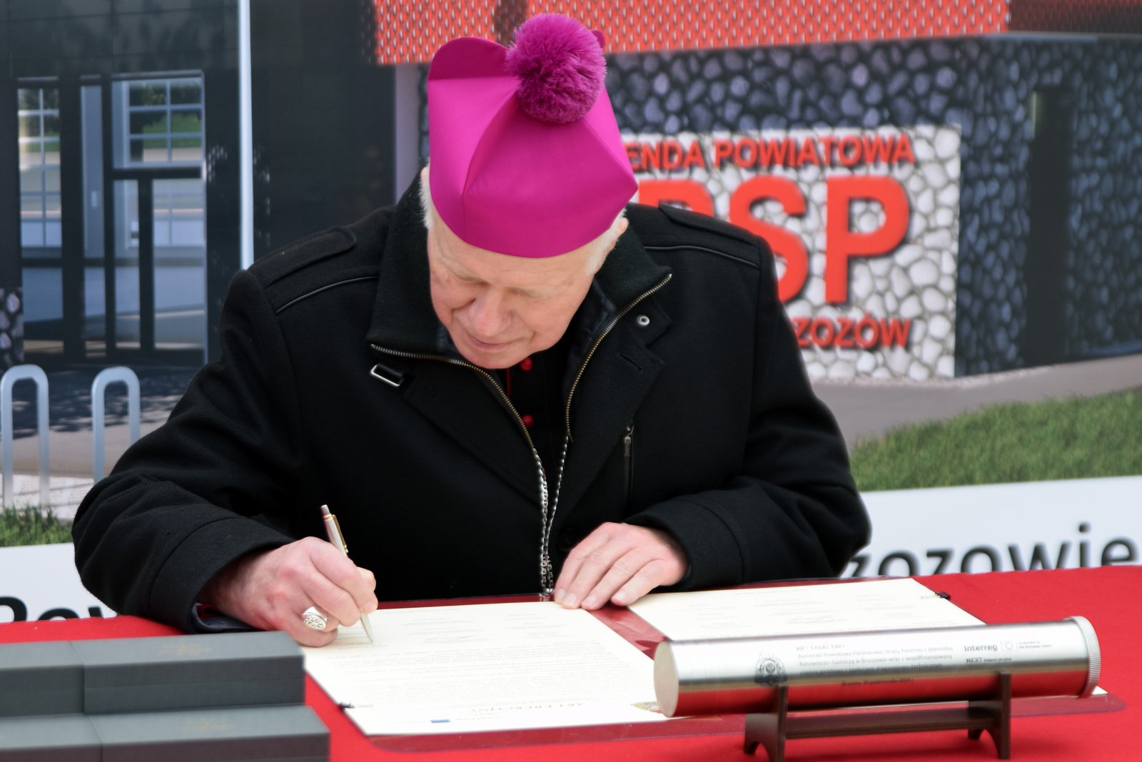 Wmurowanie aktu erekcyjnego pod budowę nowej siedziby Komendy Powiatowej i JRG PSP w Brzozowie