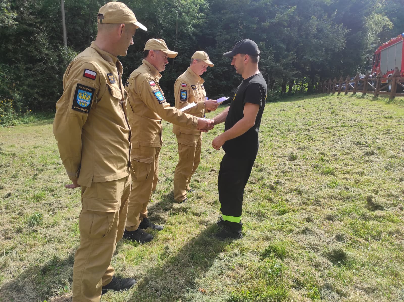 30 sierpnia 2025 roku zakończyło się szkolenie kierowców konserwatorów sprzętu ratowniczego dla ratowników Ochotniczych Straży Pożarnych z terenu powiatu brzozowskiego. Egzamin praktyczny tego kursu odbył sie w terenie leśnym Leśnictwa Podlesie w pobliżu byłego uzdrowiska Brzozów Zdrój - nadzorowanym przez Nadleśnictwo Brzozów. W szkoleniu uczestniczyło 24 ratowników, którzy pozytywnie ukończyli część teoretyczną i praktyczną tego szkolenia. Kierownikiem szkolenia był mł. bryg. Marek Kołodziej, a komisję egzaminacyjną stanowili funkcjonariusze Jednostki Ratowniczo - Gaśniczej KP PSP w Brzozowie, natomiast zaświadczenia o ukończeniu szkolenia wręczył zastępca komendanta powiatowego PSP w Brzozowie st. kpt. Wojciech Sobolak.