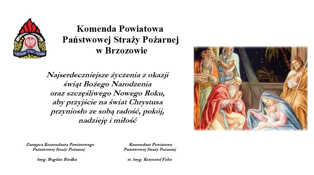 Życzenia Komendanta Powiatowego PSP w Brzozowie z okazji Świąt Bożego Narodzenia 24.12.2024 Zdjęcia (1) Pokaż zdjęcie 1 z galerii.