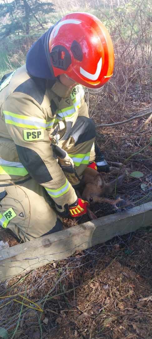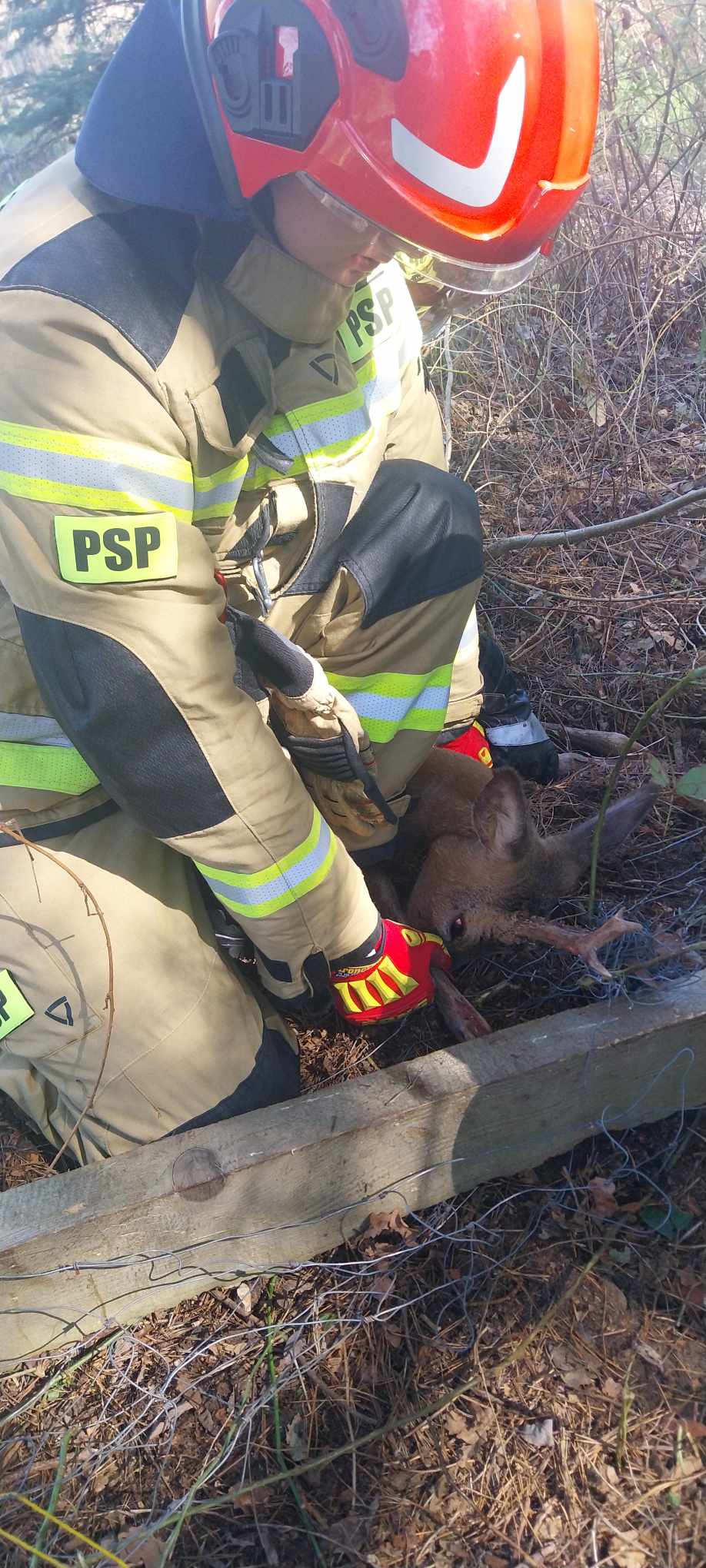 22 kwietnia 2026 roku o godz. 10:00 do Stanowiska Kierowania Komendanta Powiatowego w Busku - Zdroju wpłynęło zgłoszenie dotyczące młodego koziołka, który zaplątał się w siatkę leśną w miejscowości Zbludowice, gm. Busko – Zdrój. Dyżurny SKKP do zdarzenia zadysponował zastęp z JRG Busko – Zdrój. Działania strażaków polegały na zabezpieczeniu miejsca zdarzenia oraz uwolnieniu zwierzęcia. Po uwolnieniu młody koziołek bez żadnych obrażeń oddalił się w głąb lasu.