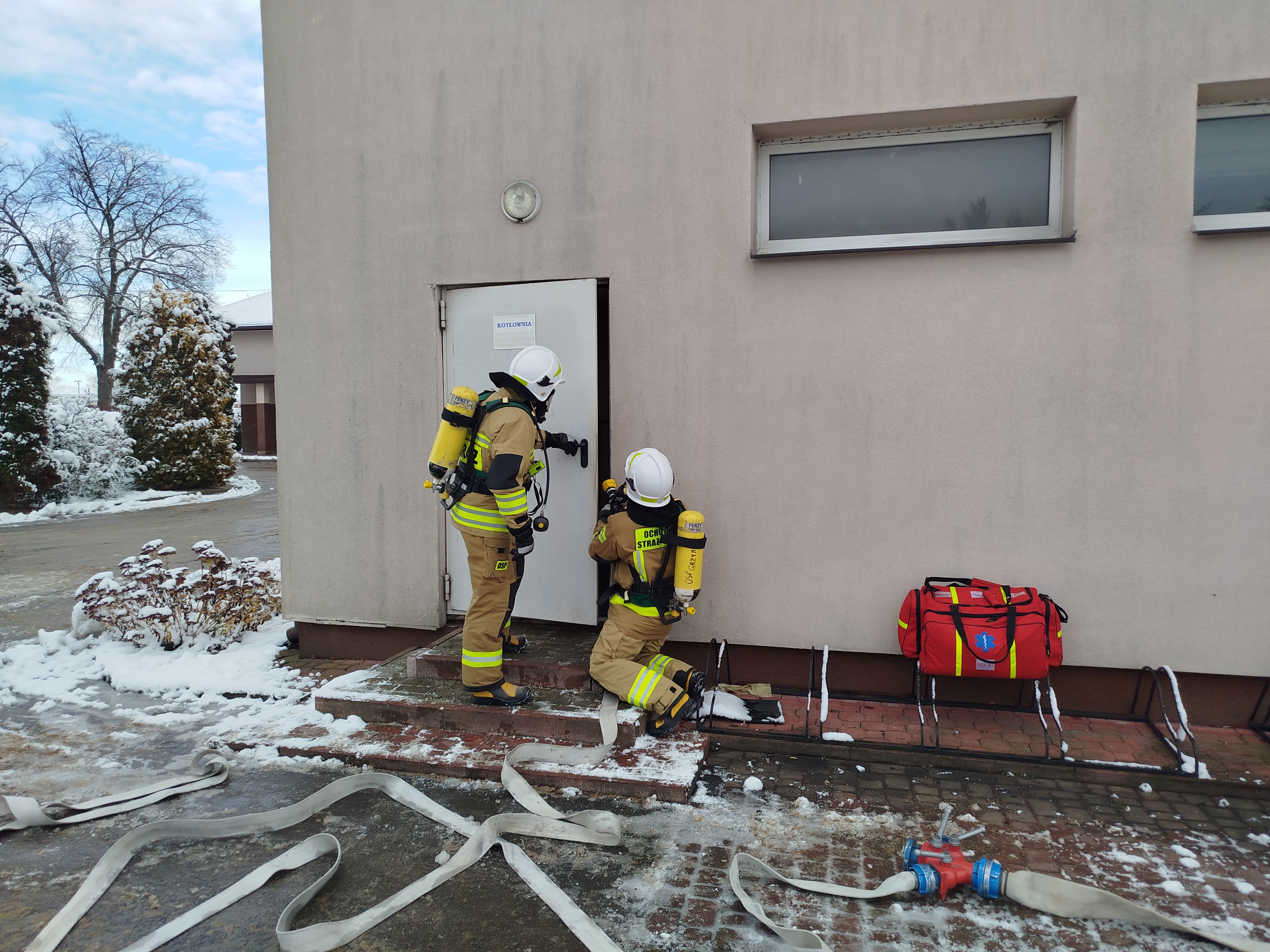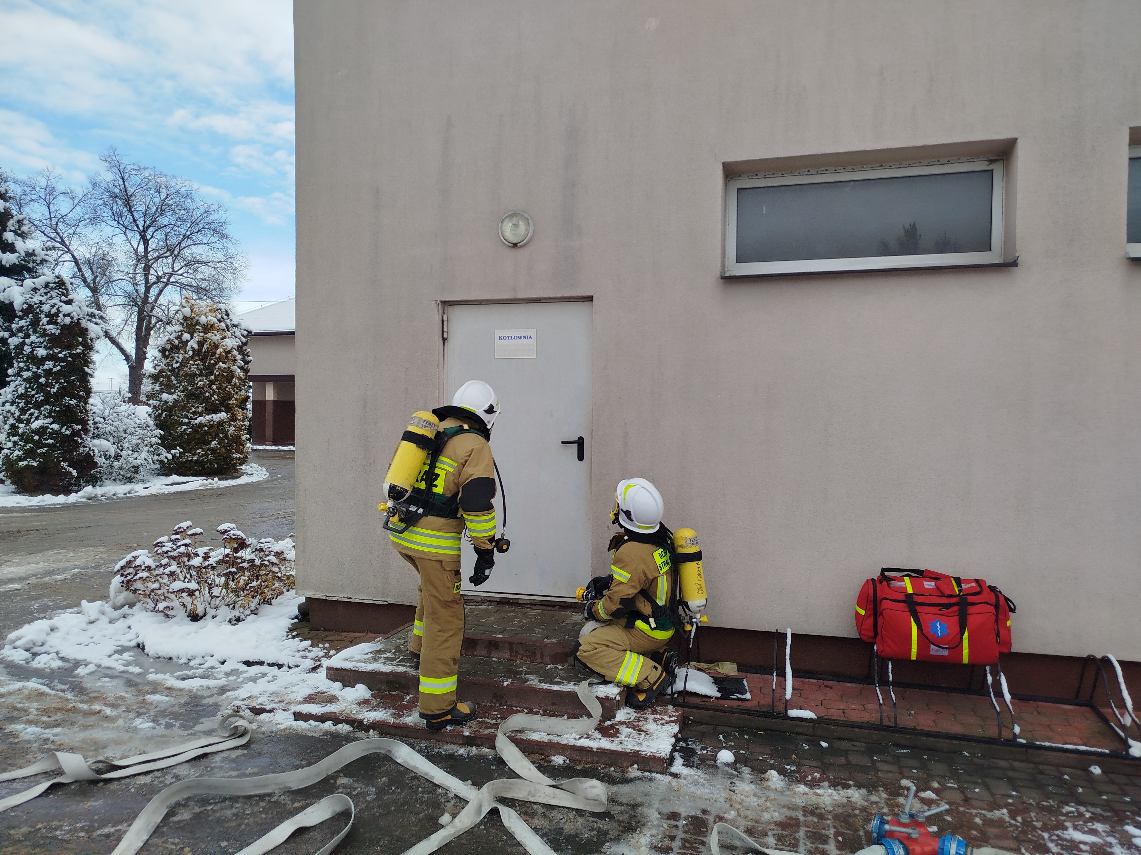 W ramach ćwiczeń, strażacy zapoznali się z charakterystyką obiektu, który jest ważnym punktem w infrastrukturze budowlanej gminy Tuczępy. Po wykonanym rozpoznaniu, przeprowadzono ćwiczenie praktyczne, którego celem była weryfikacja gotowości operacyjnej sił i środków do wykonywania działań ratowniczych. Głównym założeniem było zagrożenie powstałe w wyniku pożaru kotłowni zasilanej gazem ziemnym. Przećwiczono technikę neutralizacji zagrożenia, przeszukania pomieszczeń, ewakuację osób ze strefy objętej pożarem. Ważnym elementem szkolenia było udzielanie kwalifikowanej pierwszej pomocy przez strażaków-ratowników osobom poszkodowanym, którzy to biorą regularnie udział w akcjach ratowniczo-gaśniczych na terenie powiatu buskiego.
