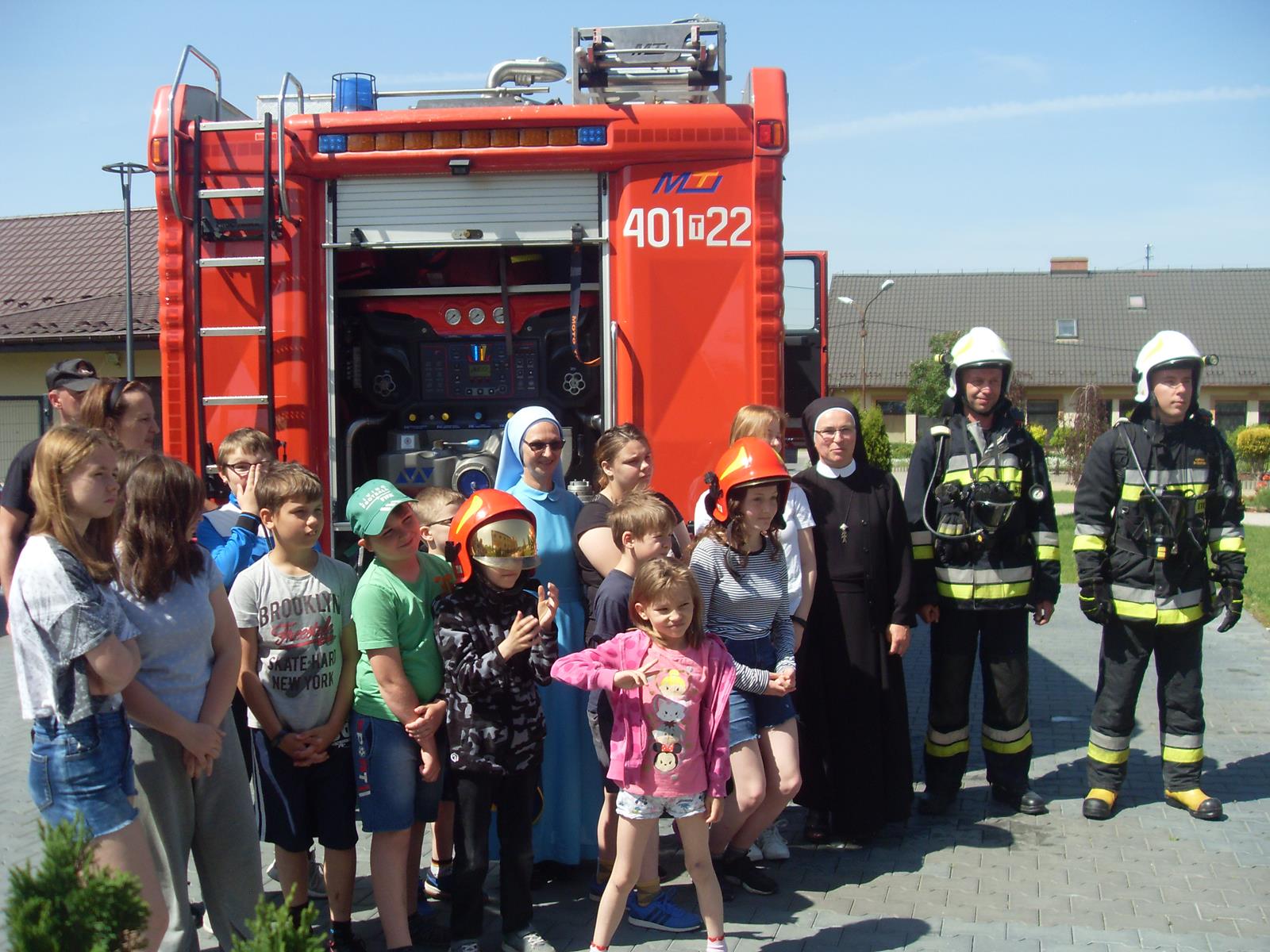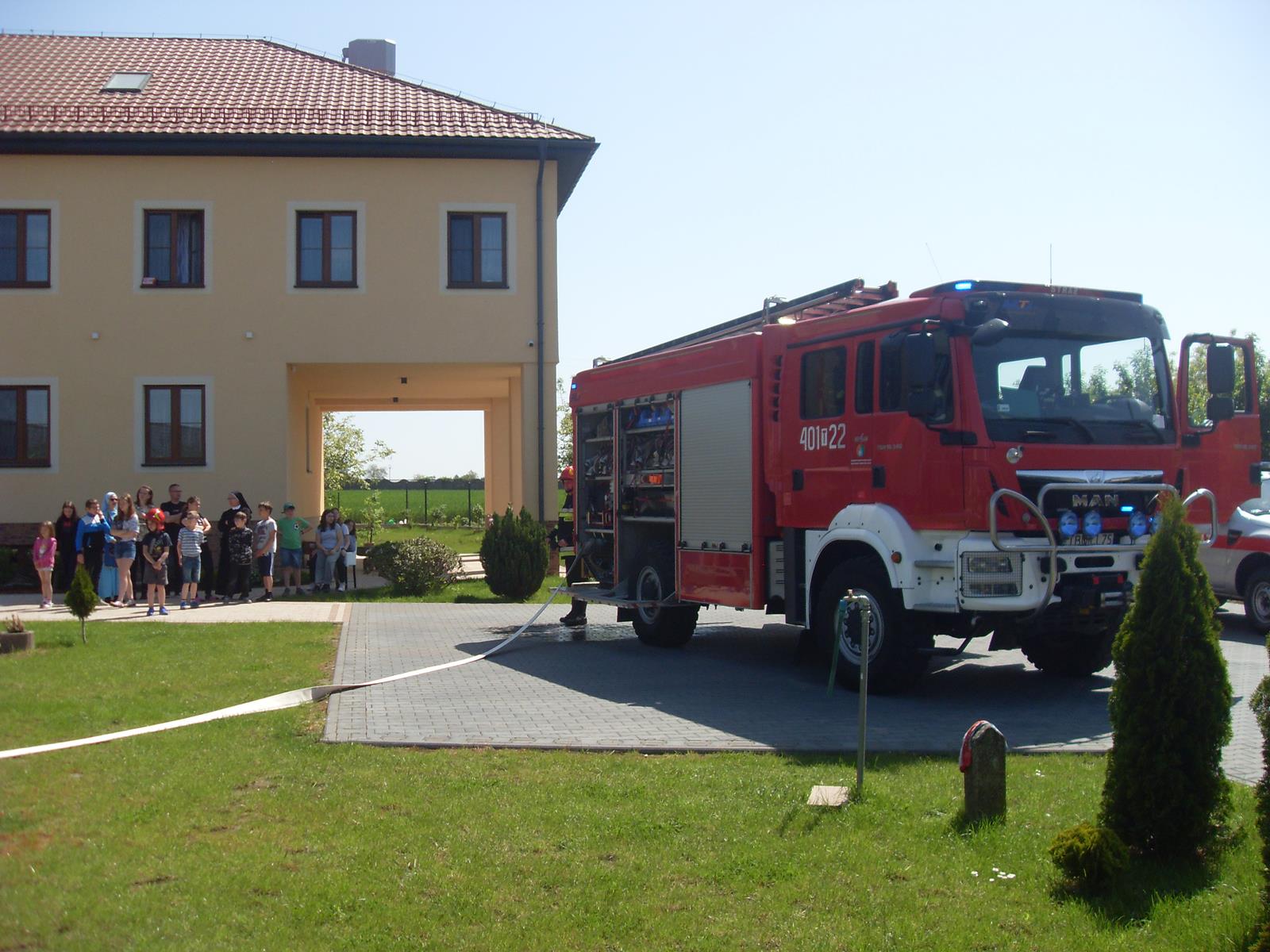Ponadto po przeprowadzonych ćwiczeniach strażacy zapoznali dzieci mieszkające w „Domu Ojca Gwidona” ze sprzętem wykorzystywanym w akcjach ratowniczo- gaśniczych.