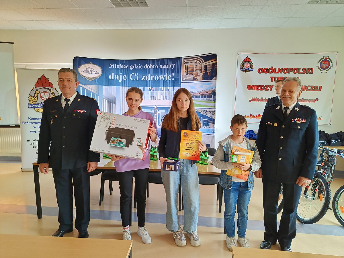 Po odczytaniu protokołu końcowego i przestawieniu wyników eliminacji powiatowych turnieju, bryg. Grzegorz Karwat – Komendant Powiatowy PSP w Busku-Zdroju oraz Pan Jerzy Kolarz – Starosta buski a jednocześnie Prezes Zarządu Oddziału Powiatowego ZOSP RP w Busku-Zdroju, wręczyli zwycięzcom okolicznościowe dyplomy oraz nagrody rzeczowe. Ponadto wszystkim uczestnikom turnieju przekazano drobne upominki.