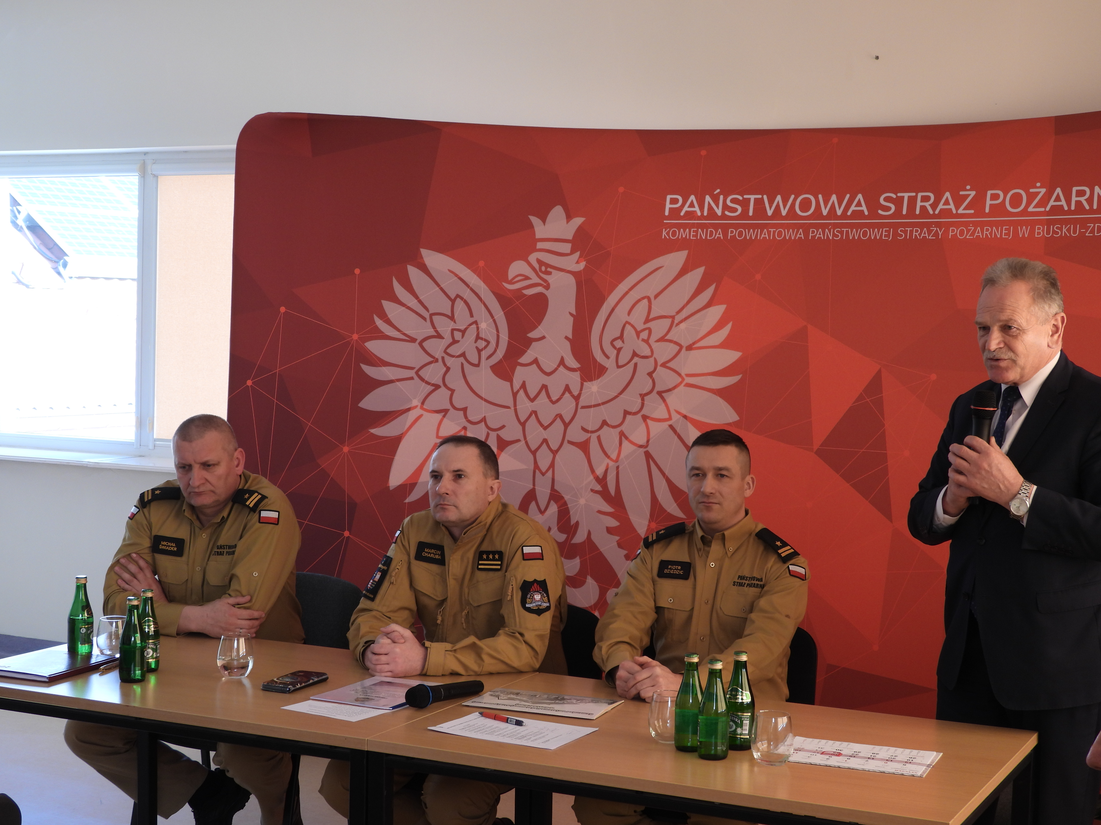 W naradzie wzięli udział: st. bryg. Marcin Charuba – Świętokrzyski Komendant Wojewódzki PSP, Jerzy Kolarz – starosta buski, burmistrzowie i wójtowie z terenu powiatu buskiego, przedstawiciele służb, inspekcji i instytucji współpracujących z PSP oraz pracownicy i funkcjonariusze buskiej komendy.