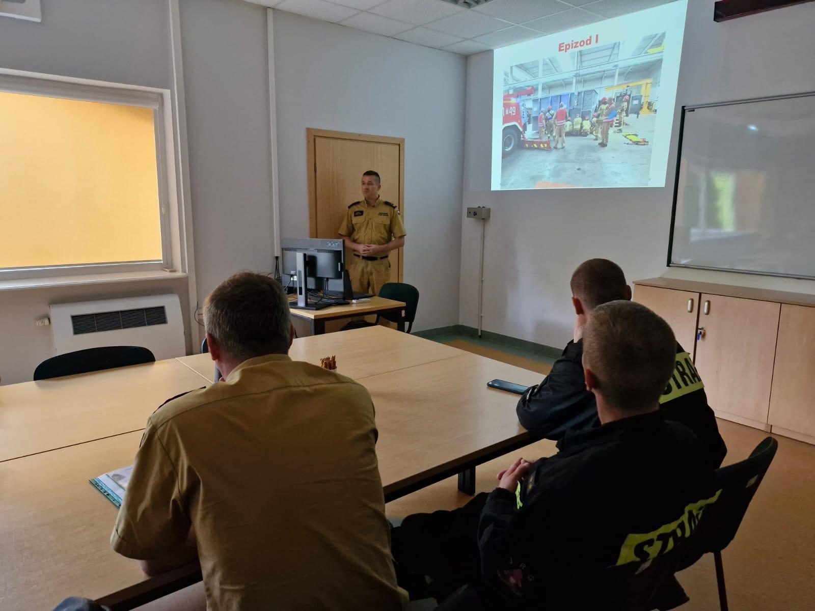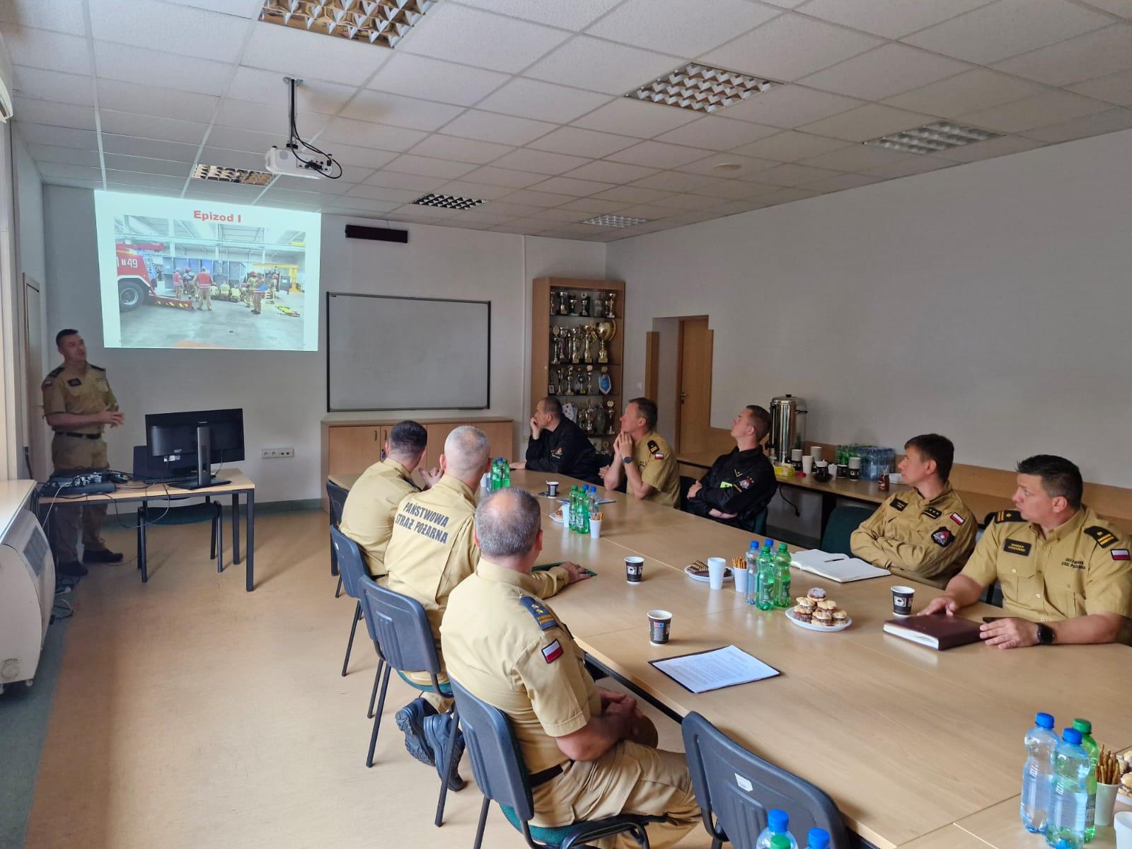 9 lipca 2024 roku w siedzibie Komendy Powiatowej Państwowej Straży Pożarnej w Busku – Zdroju odbyła się odprawa podsumowująca ćwiczenia powiatowe „METAL-KOP 2024”. W spotkaniu udział wzięli przedstawiciele Świętokrzyskiego Komendanta Wojewódzkiego PSP w osobie Zastępcy Naczelnika Wydziału Planowania Operacyjnego mł. bryg. Michał Pająk, kierownictwo Komendy Powiatowej PSP w Busku-Zdroju, rozjemcy poszczególnych odcinków bojowych oraz funkcjonariusze Komendy Powiatowej PSP w Busku – Zdroju. Na wstępie Komendant Powiatowy PSP w Busku-Zdroju bryg. Grzegorz Karwat przywitał uczestników podsumowania, a następnie zaprezentowano prezentację multimedialną wraz z reportażem filmowym przedstawiającą poszczególne etapy przebiegu ćwiczeń. Po obejrzeniu reportażu główny rozjemca, bryg. Piotr Wieczorek odczytał formularz oceny ćwiczenia, przedstawił wnioski oraz spostrzeżenia, jakie nasunęły się podczas realizacji poszczególnych założeń. Kolejnym etapem odprawy była dyskusja nad przedstawionymi wnioskami i uwagami. Odprawę podsumował mł. bryg. Michał Pająk – Zastępca Naczelnika Wydziału Planowania Operacyjnego KW PSP w Kielcach, zwracając uwagę na istotne znaczenie organizowania ćwiczeń powiatowych, co ma przełożenie na skuteczność prowadzonych działań ratowniczo-gaśniczych, dziękując jednocześnie organizatorom za wysoki poziom organizacji ćwiczeń.