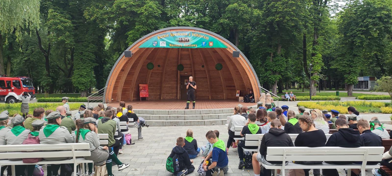 Pogadanka na temat udzielania pierwszej pomocy dla harcerzy na Muszli koncertowej w Busku-Zdroju