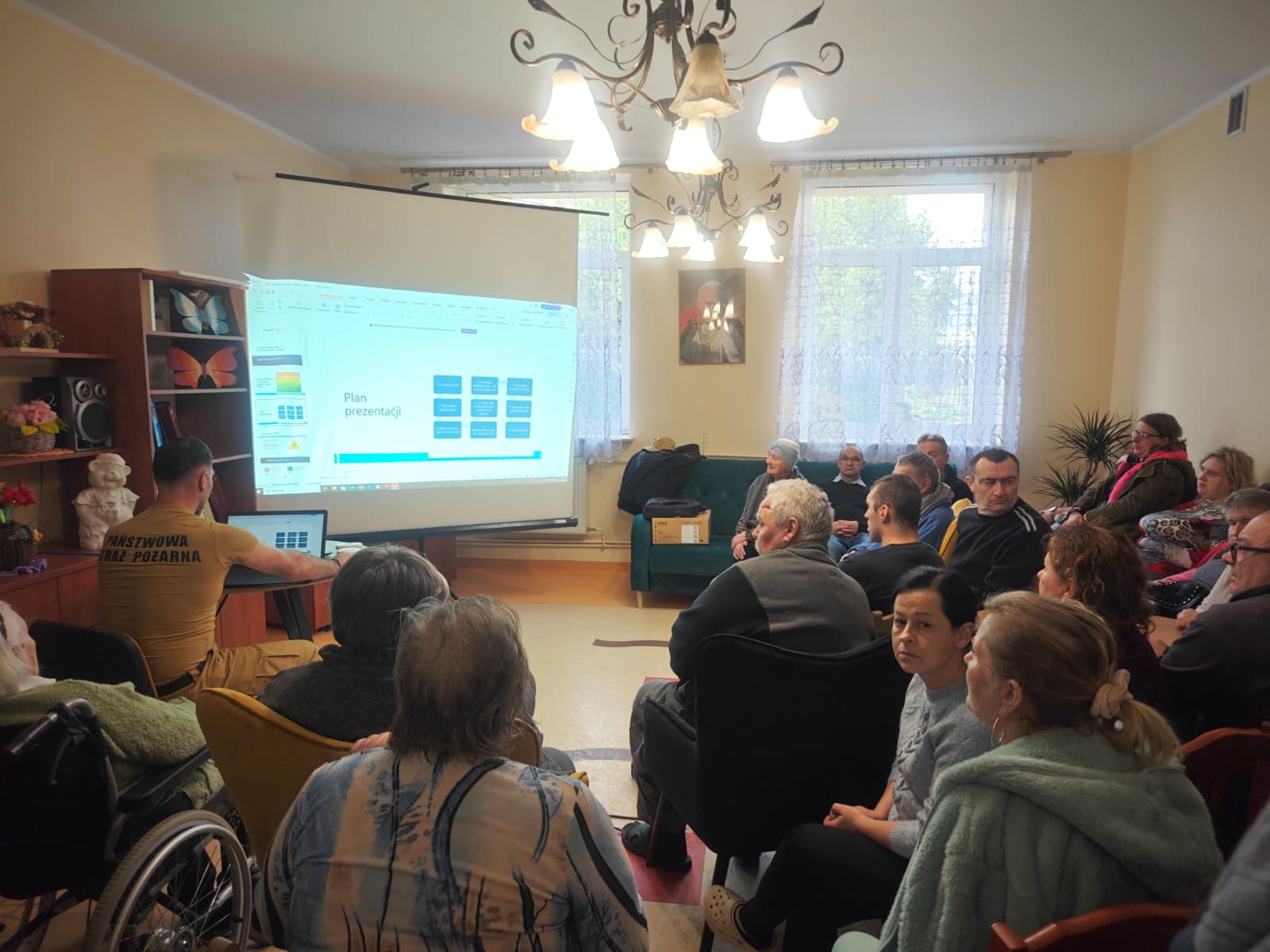 Dnia 28 listopada 2025 roku, strażacy Komendy Powiatowej Państwowej Straży Pożarnej w Busku-Zdroju, przeprowadzili prelekcję z podopiecznymi Domu Pomocy Społecznej w Świniarach. Tematem przeprowadzonego szkolenia było zapoznanie podopiecznych z zasadami bezpieczeństwa w domu w czasie korzystania z urządzeń grzewczych. Podczas prelekcji uczestnikom przekazana została niezbędna wiedza dotycząca prawidłowego postępowania w sytuacji uwolnienia tlenku węgla. Omówione zostały również kwestie związane z zasadami wzywania pomocy. Uczestnikom zaprezentowano czujnik tlenku węgla, oraz omówiono zasady jego działania. Prelekcja cieszyła się dużym zainteresowaniem podopiecznych, w spotkaniu wzięło udział ok. 32osób.