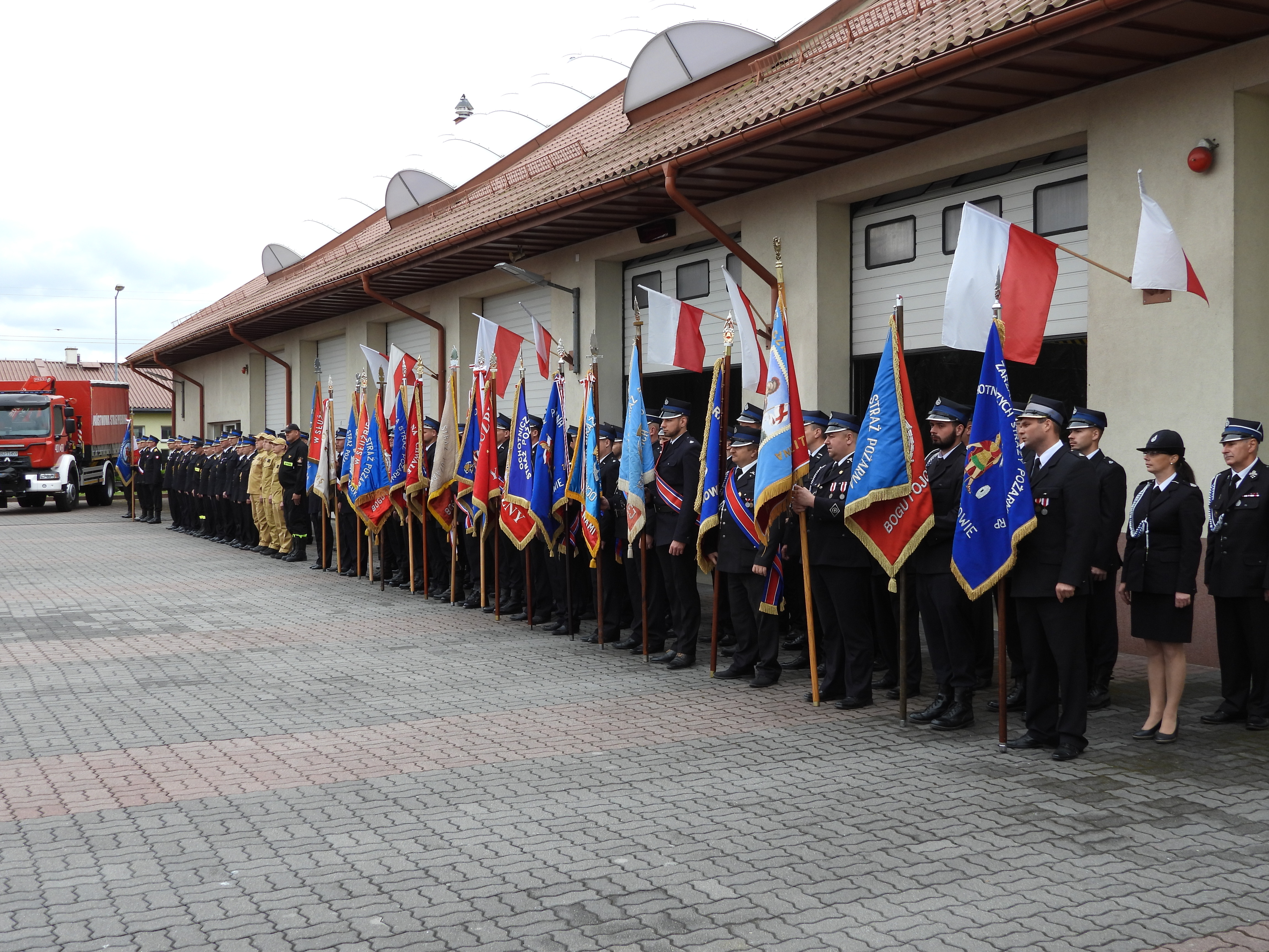 Uroczystość rozpoczęła się od złożenia meldunku przez dowódcę uroczystości kpt. Sebastiana Machnickiego, Zastępcy Świętokrzyskiego Komendanta Wojewódzkiego Państwowej Straży Pożarnej st. bryg. Marcinowi Machowskiemu, po czym nastąpił przegląd pododdziałów, w skład którego wchodzili buscy strażacy oraz poczty sztandarowe jednostek OSP z terenu powiatu buskiego.
