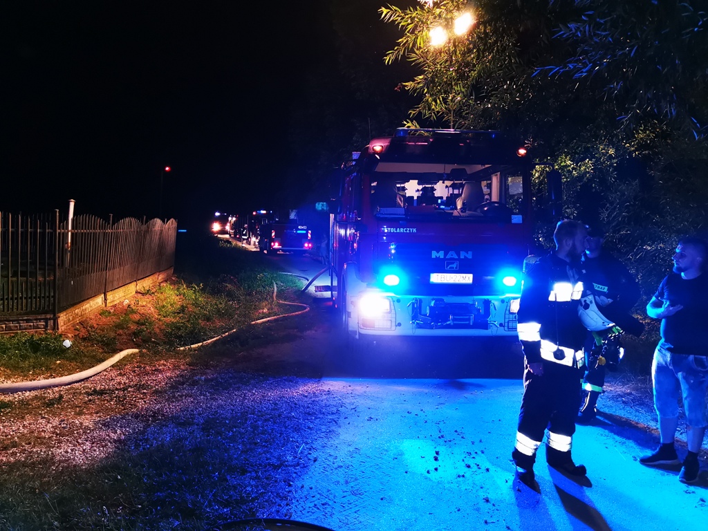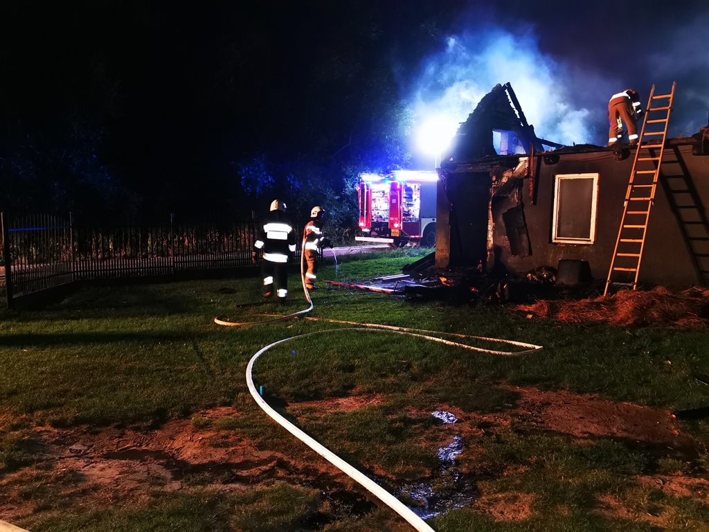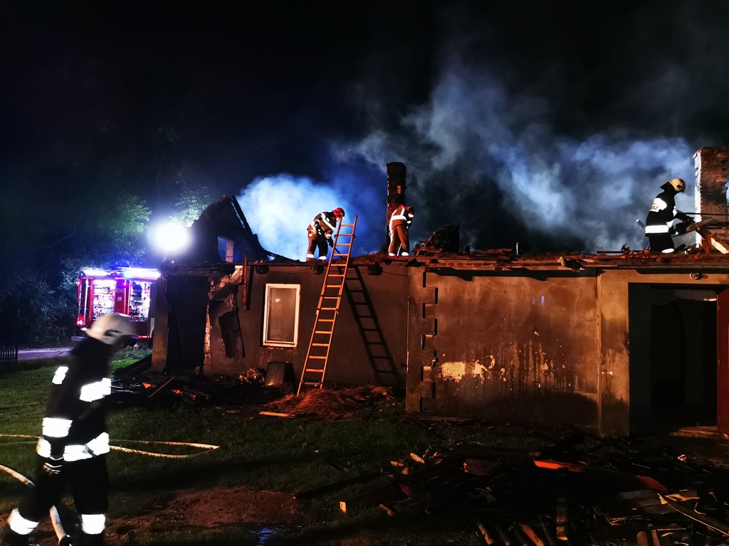 25 lipca br. o godz. 23:39 do Stanowiska Kierowania Komendanta Powiatowego PSP w Busku-Zdroju wpłynęło zgłoszenie o pożarze budynku mieszkalnego w miejscowości Kostera gm. Gnojno. Do działań zostały zadysponowane trzy zastępy z JRG Busko-Zdrój oraz dwie jednostki OSP z terenu gminy Gnojno tj. OSP Balice i OSP Gnojno. Po przybyciu na miejsce pożaru jednostek ochrony przeciwpożarowej okazało się, że pożarem objęte jest całe poddasze w budynku mieszkalnym parterowym. Po zabezpieczeniu teren akcji oraz odłączeniu przez zakład energetyczny prądu do budynku, przystąpiono do działań gaśniczych podając trzy prądy gaśnicze wody w natarciu na palący się budynek. Po zlokalizowaniu pożaru, przystąpiono do prac rozbiórkowych nadpalonej konstrukcji dachu, ich przelewaniu oraz wyeliminowaniu pojedynczych zarzewi ognia. Następnie budynek sprawdzono kamerą termowizyjną nie stwierdzając zagrożenia. Ze względu na uszkodzenia powstałe w wyniku pożaru, budynek nie nadawał się do dalszego zamieszkania, wobec czego mieszkańcy uszkodzonego domu (cztery osoby) znalazły schronienie u rodziny. Ponadto jedna z osób będąc pod wpływem zdarzenia zaczęła uskarżać się na złe samopoczucie, wobec czego strażacy udzielili jej wsparcia psychicznego, a przybyły na miejsce akcji ZRM po przebadaniu podjął decyzję o zabraniu osoby do szpitala.