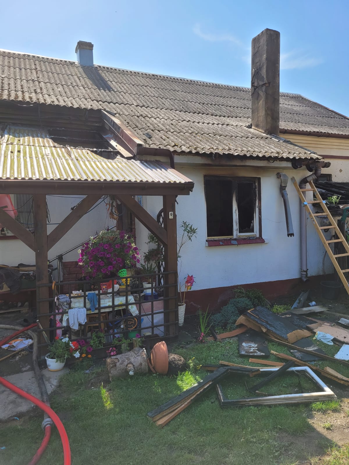 Pożar domu jednorodzinnego w miejscowości Harmoniny, gm. Nowy Korczyn