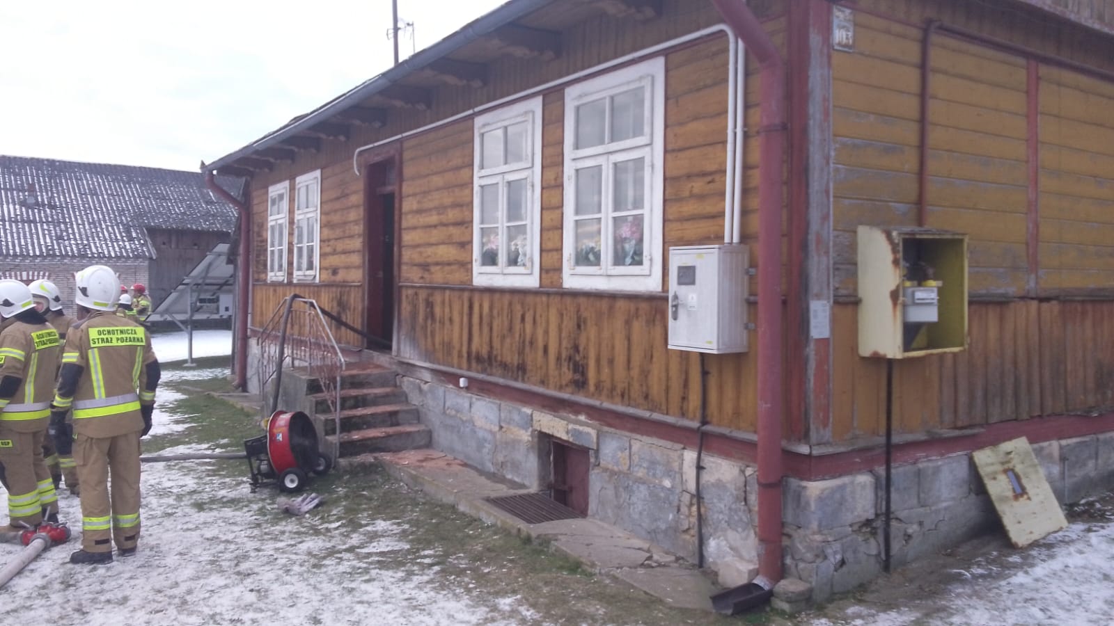 Po przybyciu ratowników okazało się, że pożarem częściowo objęty był parter i poddasze domu. W budynku znajdowała się nieprzytomna osoba, która została ewakuowana na zewnątrz przez sąsiada przed przybyciem służb. Poszkodowany został zabrany do szpitala. Działania straży pożarnej polegały na zabezpieczeniu miejsca zdarzenia, udzieleniu kwalifikowanej pierwszej pomocy osobie poszkodowanej, podaniu prądu wody w natarciu na źródło pożaru oraz częściowej rozbiórce nadpalonych ścian oraz stropu budynku a także kontroli pogorzeliska przy użyciu kamery termowizyjnej oraz detektora wielogazowego.