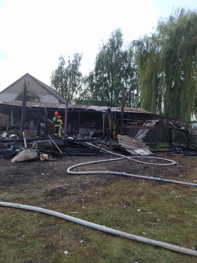 Pożar kuchni letniej, budynków gospodarczych oraz przybudówki w miejscowości Falki gm. Gnojno
