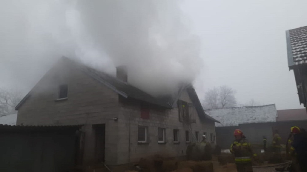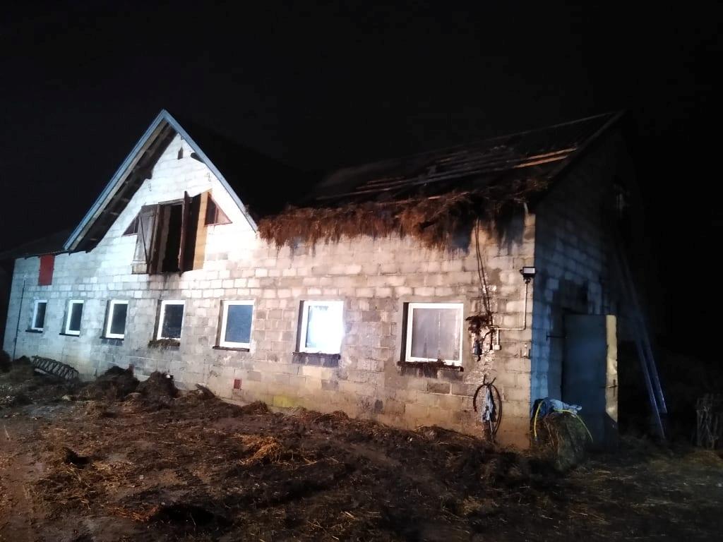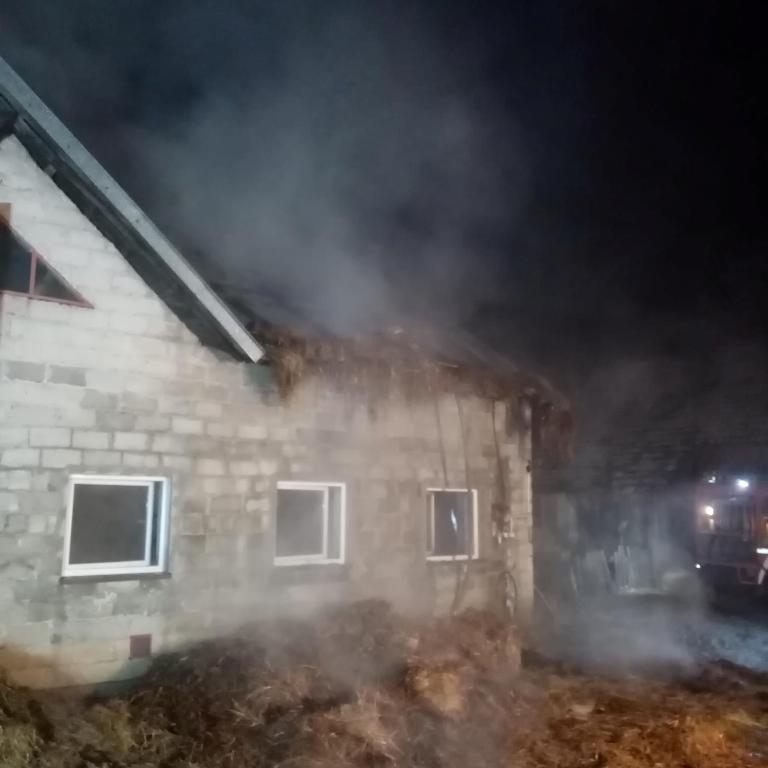 Pożar poddasza budynku gospodarczego w miejscowości Łęka gm. Nowy Korczyn