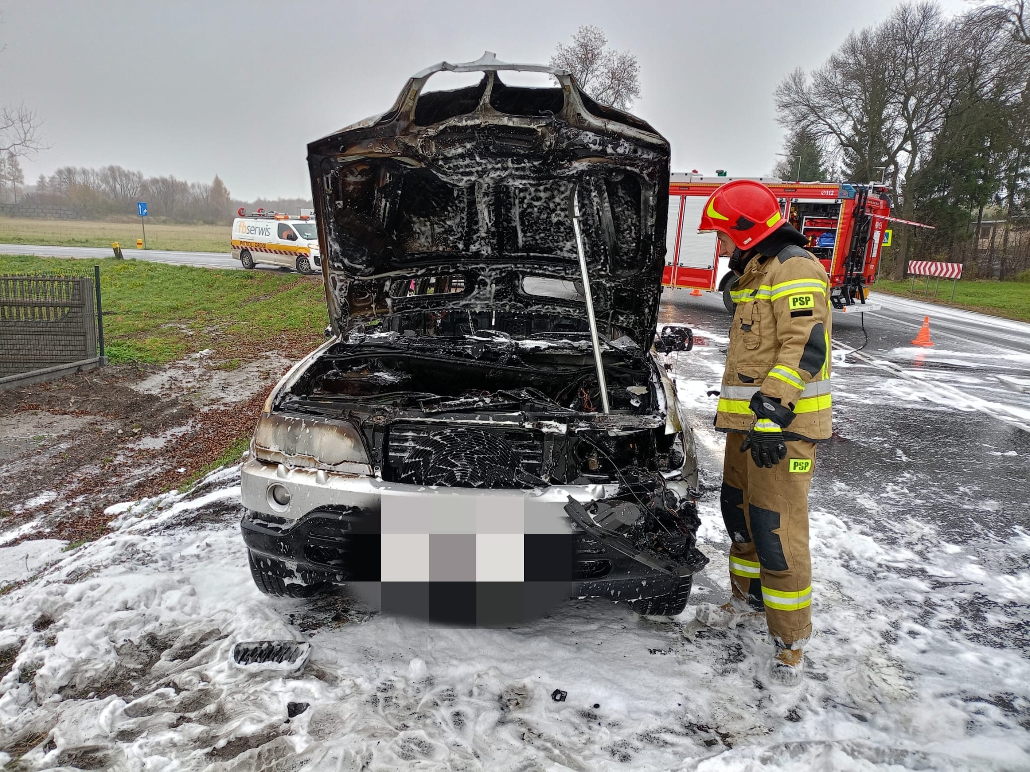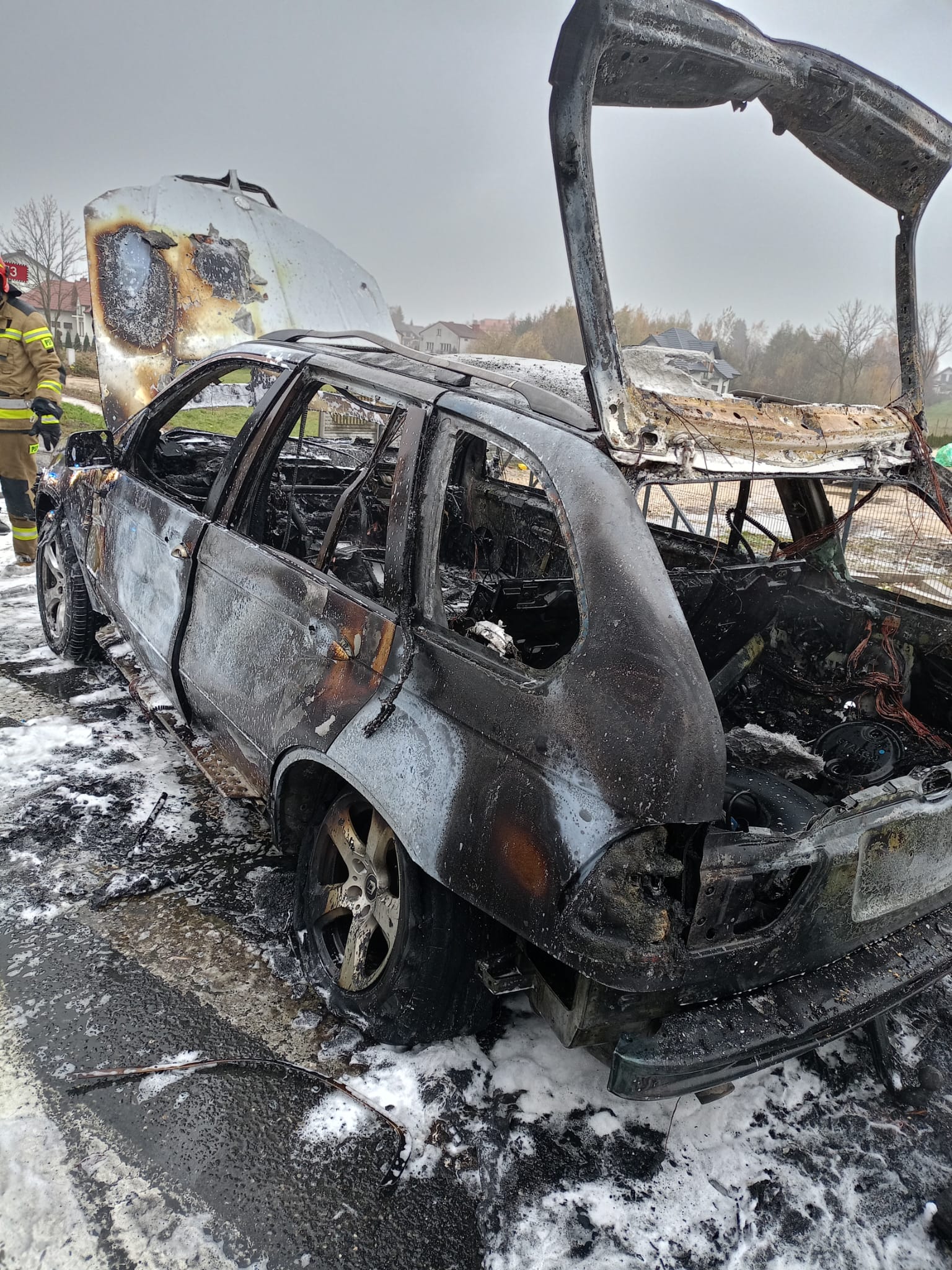 15 listopada 2023 roku o godz. 12:33 do Stanowiska Kierowania Komendanta Powiatowego Państwowej Straży Pożarnej w Busku–Zdroju wpłynęło zgłoszenie o pożarze samochodu osobowego w miejscowości Stopnica. Do zdarzenia zostały zadysponowane siły i środki z Jednostki Ratowniczo-Gaśniczej PSP w Busku-Zdroju oraz zastęp OSP Stopnica. Po przybyciu na miejsce zdarzenia JOP przeprowadzono rozpoznanie, w wyniku którego ustalono, że pali się samochód osobowy marki BMW X5 (benzyna+LPG). Ogniem objęty był cały pojazd. Samochodem podróżował sam kierowca, który nie odniósł obrażeń. Działania zastępów polegały na zabezpieczeniu miejsca zdarzenia i podaniu dwóch prądów gaśniczych piany ciężkiej na palący się pojazd. Spaleniu uległ cały samochód. Po ugaszeniu pożaru zakręcono zawór butli LPG i sprawdzono kamerą termowizyjną wrak pojazdu-brak zagrożenia. W chwili zakończenia działań samochód znajdował się na poboczu drogi. Na tym działania zakończono.