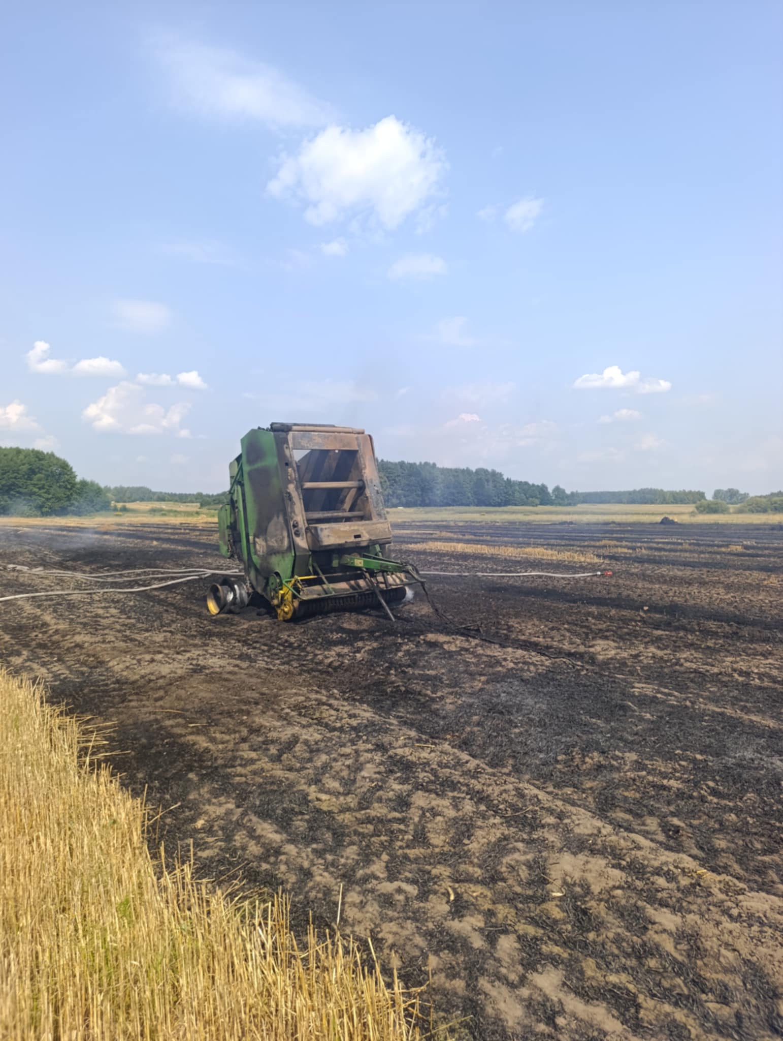 Około godziny 13:30 w sobotę 16 sierpnia 2025 r. doszło do pożaru ścierniska, balotów słomy i prasy rolującej w miejscowości Kostera, gm. Gnojno.