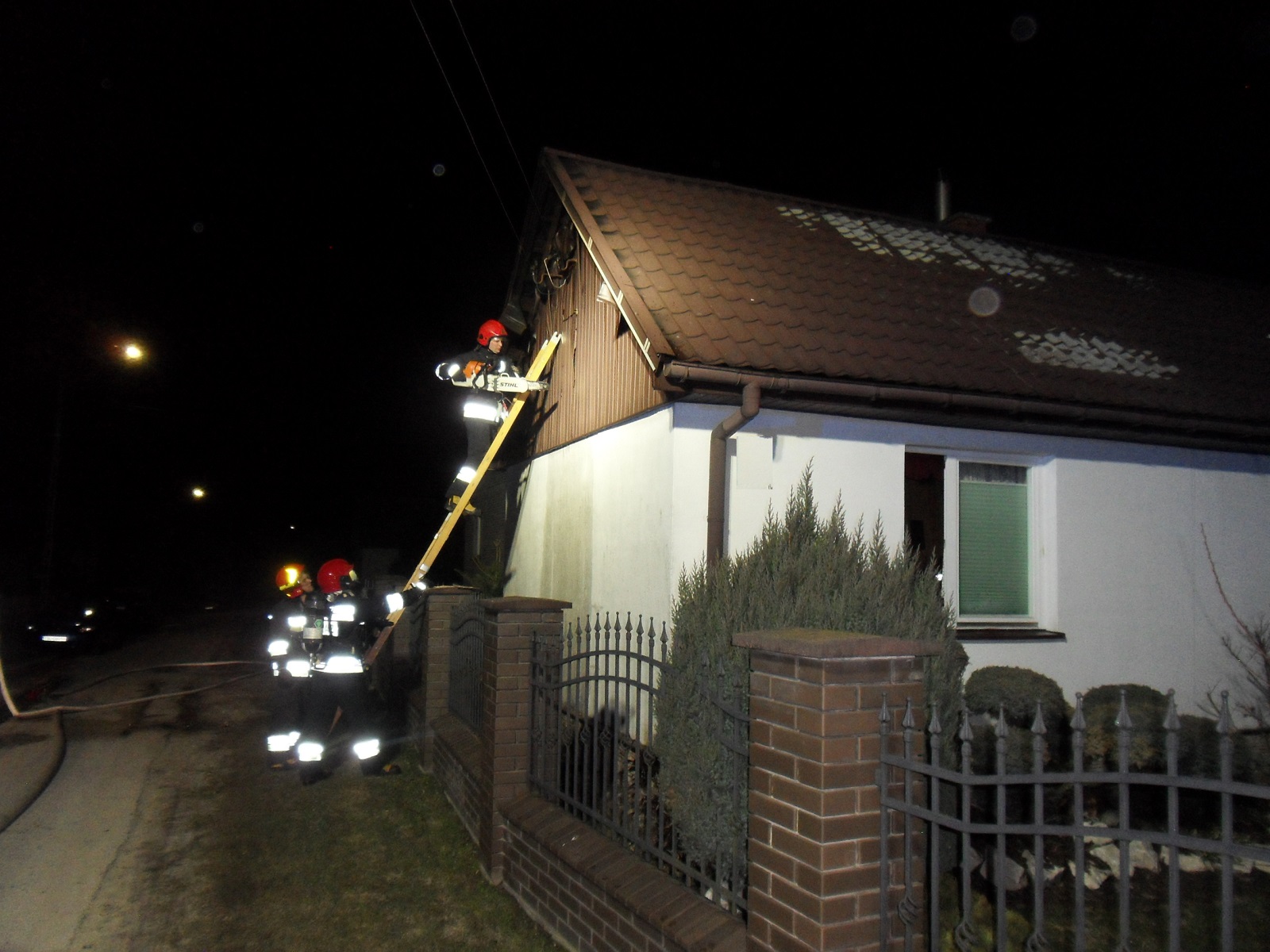 14 marca 2021 roku około godziny 20.00 do Stanowiska Kierowania Komendanta Powiatowego PSP w Busku-Zdroju wpłynęła informacja o pożarze budynku mieszkalnego w miejscowości Kąty Stare gmina Stopnica. Dyżurny do zdarzenia w pierwszej fazie zadysponował trzy zastępy JRG PSP z Buska Zdroju, oraz jednostkę OSP KSRG Stopnica. Po przybyciu na miejsce zdarzenia zastępów JOP i przeprowadzonym rozpoznaniu stwierdzono, że pożarem objęty jest drewniany strop oraz strych budynku mieszkalnego, krytego blachą. Osoba mieszkająca w domu znajdowała się poza budynkiem. Działania OSP Stopnica, która jako pierwsza przybyła na miejsce polegały na: zabezpieczeniu miejsca zdarzenia, podaniu dwóch prądów gaśniczych wody (jeden prąd wprowadzono na strych, natomiast drugi prąd podano z zewnątrz na podbitkę dachową). Działania przybyłych zastępów z JRG Busko-Zdrój polegały na: podaniu jednego prądu gaśniczego wody do wnętrza pomieszczenia na przepalony drewniany strop. Następnie w ścianie szczytowej budynku został wykonany otwór oraz przy użyciu agregatu oddymiającego oddymiono strych. W trakcie prowadzonych działań przeprowadzono ewakuację mienia znajdującego się wewnątrz budynku (telewizor, radio). Po lokalizacji pożaru dokonano demontażu nadpalonych elementów stropu i obudowy kominka. Nadpalone elementy zostały wyniesione na zewnątrz i ponownie przelane wodą. Po ugaszeniu pożaru kamerą termowizyjną sprawdzono cały budynek celem wyeliminowania pojedynczych zarzewi ognia oraz detektorem wielogazowym na obecność gazów trujących – w obu przypadkach nie stwierdzono zagrożenia. Dzięki sprawnie przeprowadzonej akcji ratowniczo-gaśniczej udało się zapobiec rozprzestrzenieniu się pożaru na cały budynek, a tym samym ograniczyć powstałe straty.
