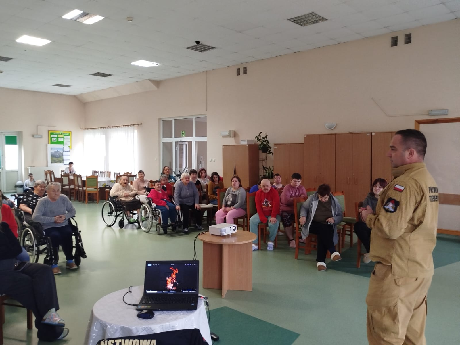 W dniu 31 marca br. funkcjonariusz z Komendy Powiatowej Państwowej Straży Pożarnej w Busku-Zdroju przeprowadził spotkanie edukacyjne dla pensjonariuszy Domu Pomocy Społecznej w Zborowie. Prelekcja stanowiła doskonałą okazję do omówienia zasad zapobiegania pożarom, zaprezentowania dobrych praktyk w zakresie bezpieczeństwa pożarowego, a także przypomnienia procedur ewakuacyjnych obowiązujących w obiekcie.