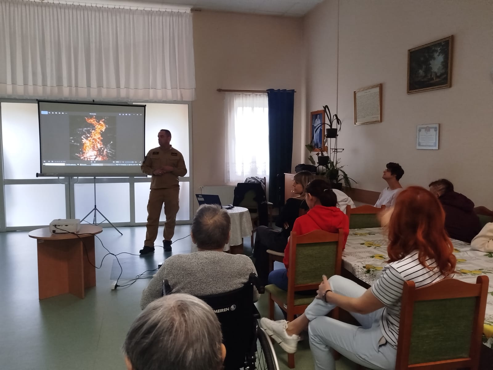 Szczególną uwagę zwrócono na zagrożenia związane z używaniem otwartego ognia przez mieszkańców DPS. Omówiono zasady bezpiecznego korzystania ze świec, zapalniczek czy zapałek, podkreślając konieczność zachowania ostrożności oraz bezwzględnego przestrzegania regulaminów obowiązujących w placówce. Przypomniano, że pozostawienie otwartego ognia bez nadzoru może prowadzić do powstania pożaru i stanowi poważne zagrożenie dla życia oraz zdrowia wszystkich mieszkańców.