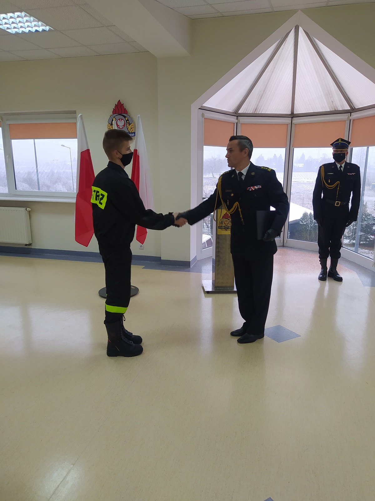 Nowo przyjętemu strażakowi życzymy zdrowia, wytrwałości oraz realizowania się w służbie.