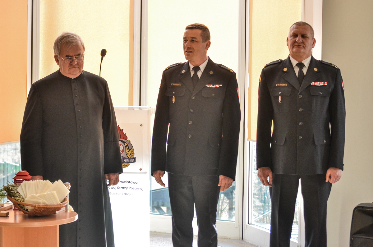 19 grudnia 2025 r. w Komendzie Powiatowej Państwowej Straży Pożarnej w Busku-Zdroju odbyło się spotkanie opłatkowe z okazji zbliżających się Świąt Bożego Narodzenia.