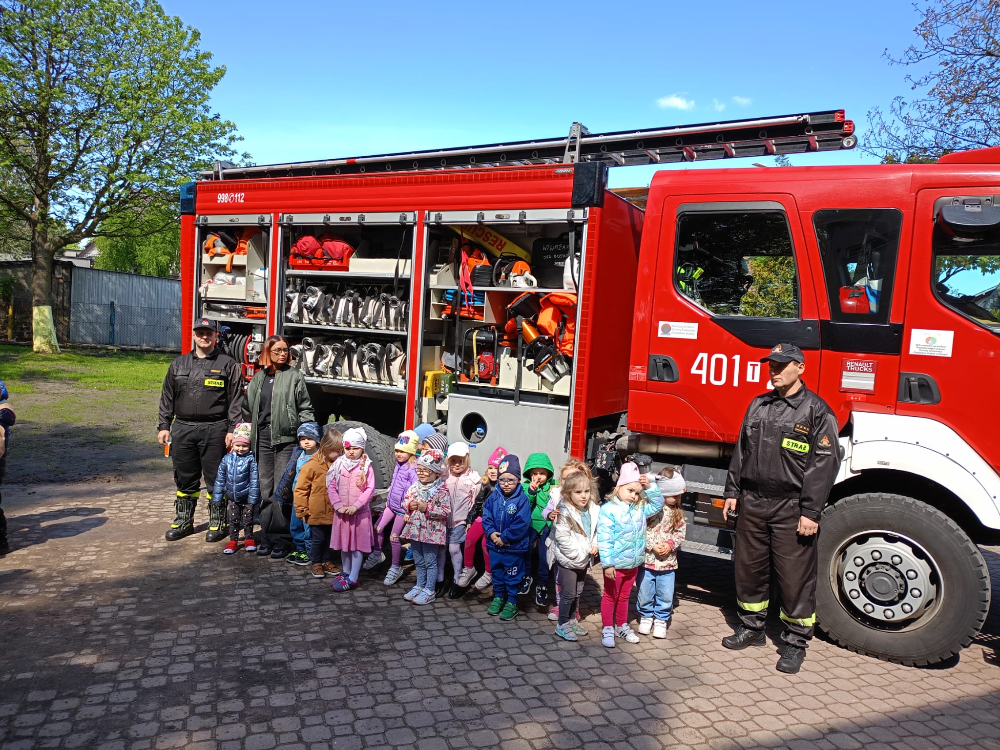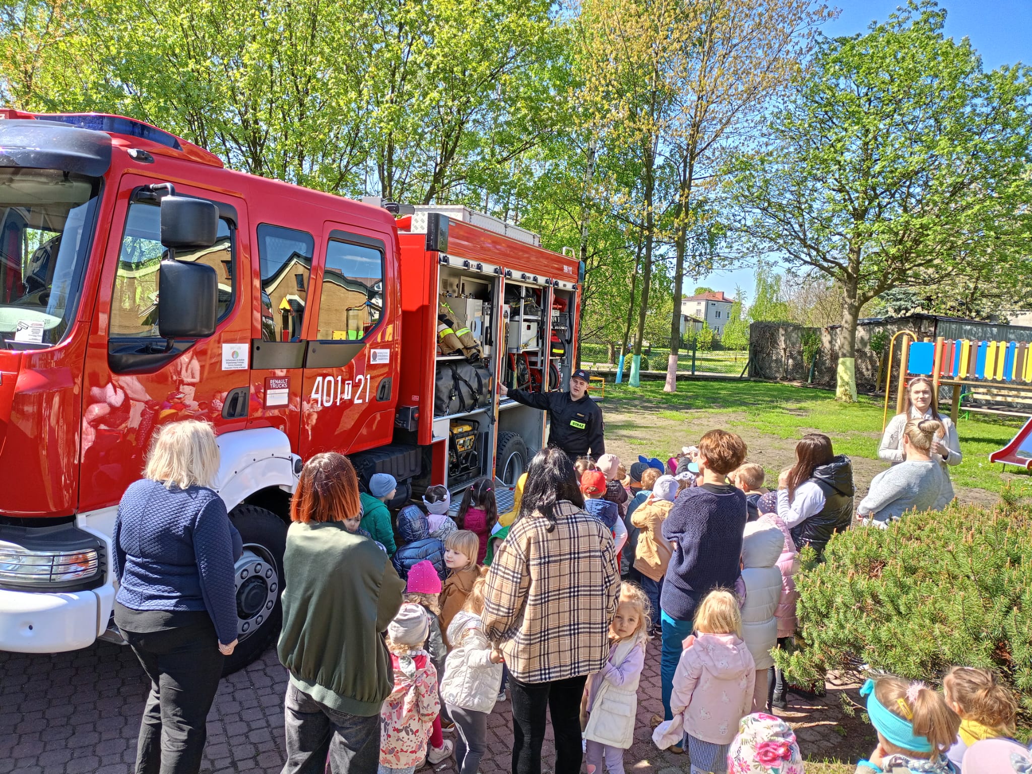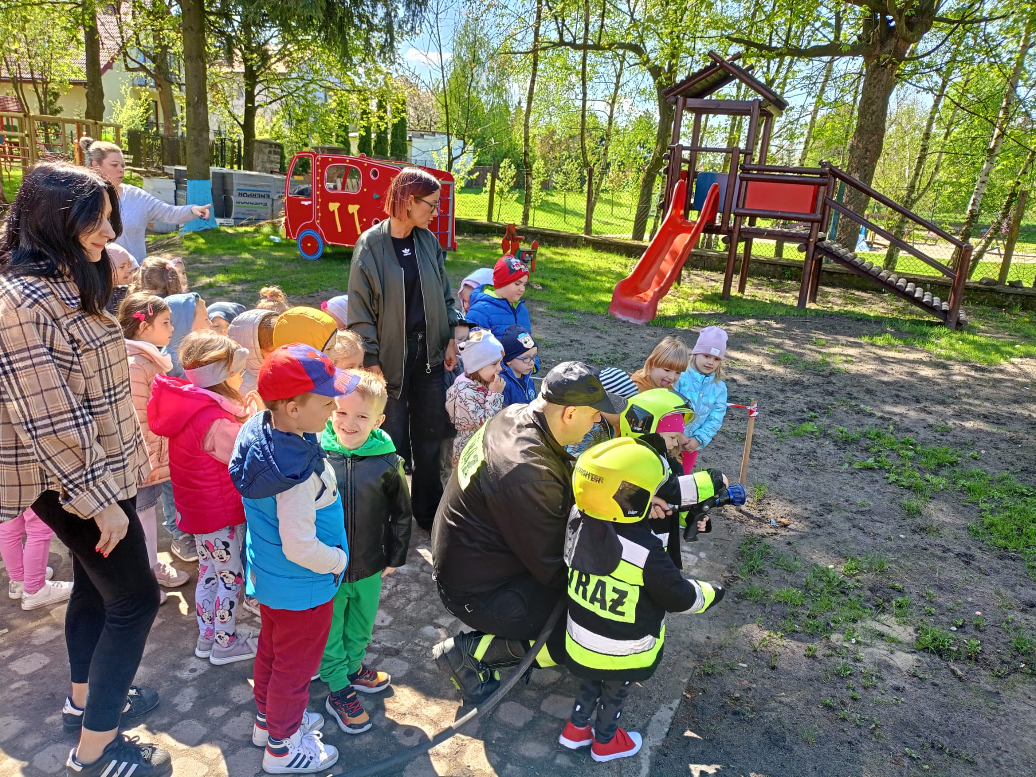 Dnia 4 maja 2023 roku strażacy z Komendy Powiatowej Państwowej Straży Pożarnej w Busku - Zdroju w odpowiedzi na zaproszenie dyrekcji Publicznego Przedszkola Nr 1 w Busku - Zdroju spotkali się z dziećmi z tamtejszej placówki. W czasie spotkania funkcjonariusze buskiej komendy przedstawili m.in. zagrożenia jakie mogą powstać podczas niewłaściwego użytkowania ognia, jak powiadomić służby ratunkowe, jak postępować podczas zasłabnięcia osoby. Dużym zainteresowaniem wśród najmłodszych uczestników prelekcji cieszył się pokaz sprzętu będący na wyposażeniu samochodu ratowniczo - gaśniczego, którym strażacy przyjechali na teren przedszkola. W spotkaniu padło dużo pytań od przedszkolaków skierowanych do strażaków dotyczących ich pracy, często trudnej i niebezpiecznej. Na koniec spotkania dzieci mogły poczuć się jak prawdziwi strażacy, ubrani w hełmy i kurtki ubrania specjalnego operowali prądem wody z prądownicy. Prelekcja cieszyła się dużym zainteresowaniem wychowanków przedszkola.