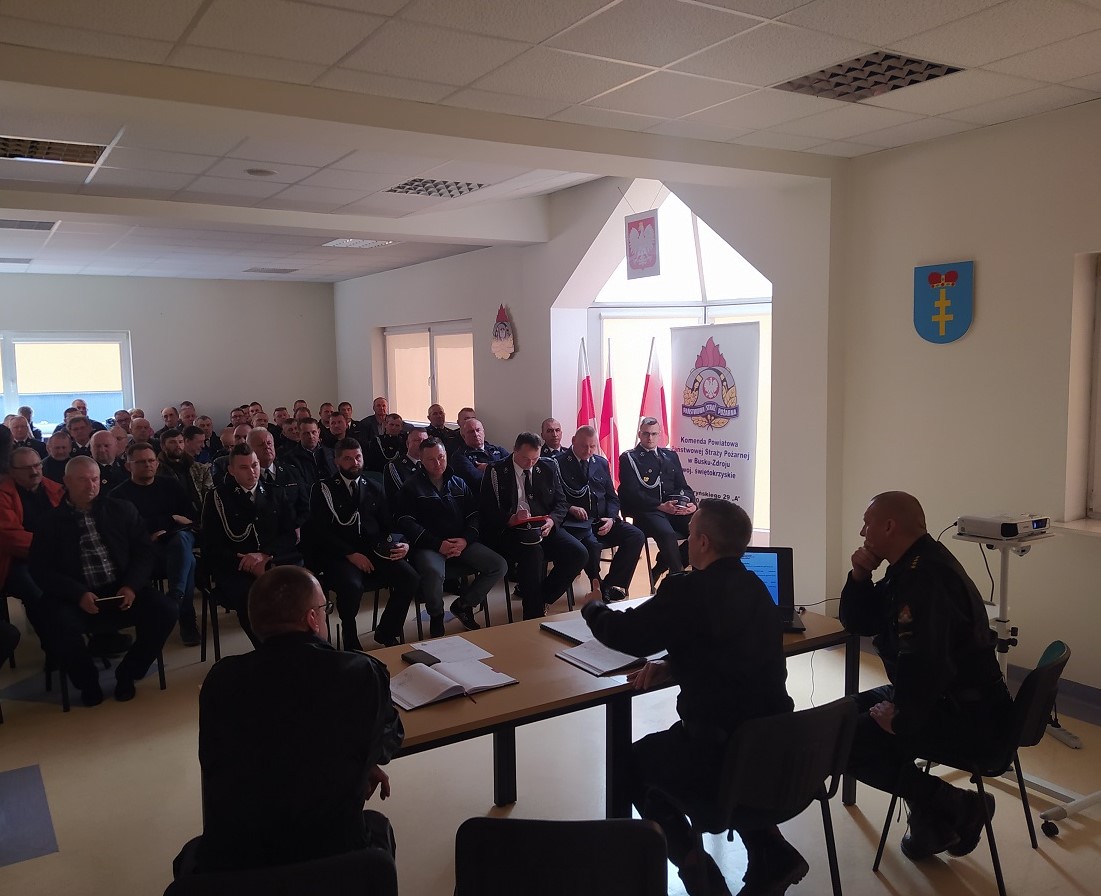 11 kwietnia 2022 roku w sali konferencyjnej Komendy Powiatowej PSP w Busku – Zdroju odbyło się spotkanie z kierownictwem jednostek OSP z terenu powiatu buskiego oraz z przedstawicielami Urzędów Miast i Gmin oraz Urzędów Gmin odpowiedzialnych za sprawy ochrony przeciwpożarowej. Podczas narady omówiono szereg tematów związanych w głównej mierze z bieżącą działalnością jednostek OSP w związku z wprowadzoną w życie ustawą o ochotniczych strażach pożarnych. Po omówieniu wszystkich przygotowanych zagadnień, nastąpiła dyskusja, podczas której druhowie oraz pracownicy urzędów przedstawili swoje spostrzeżenia i wnioski związane z działalnością stowarzyszeń jakimi są Ochotnicze Straże Pożarne.