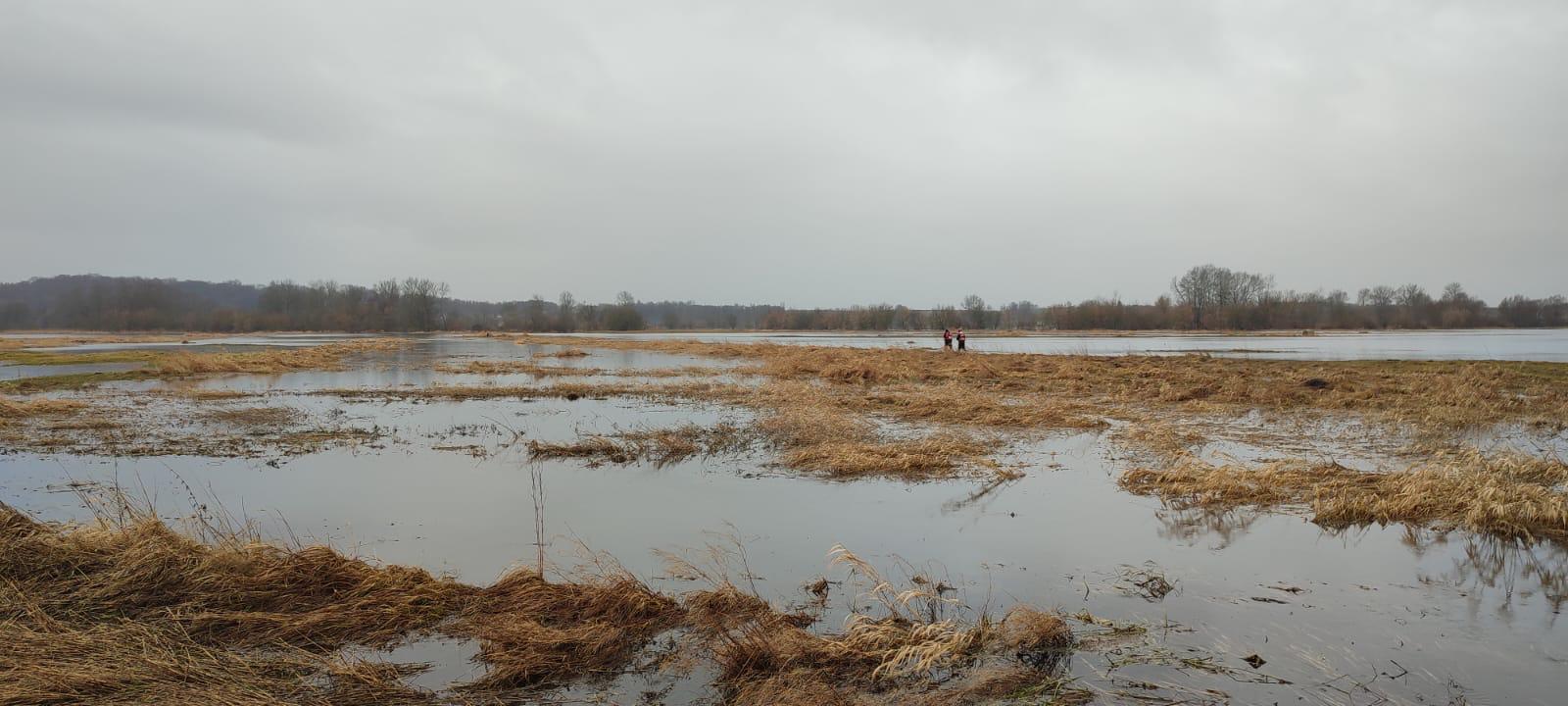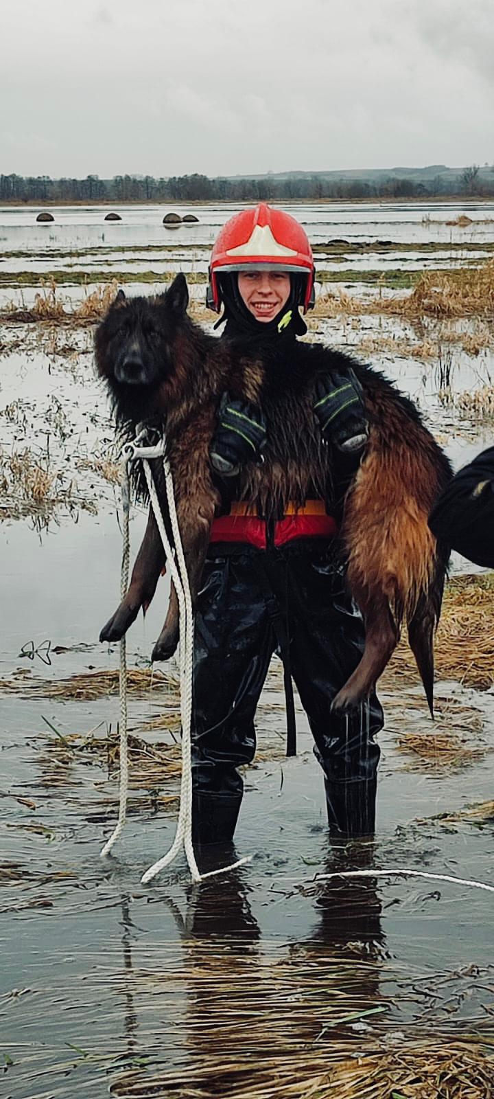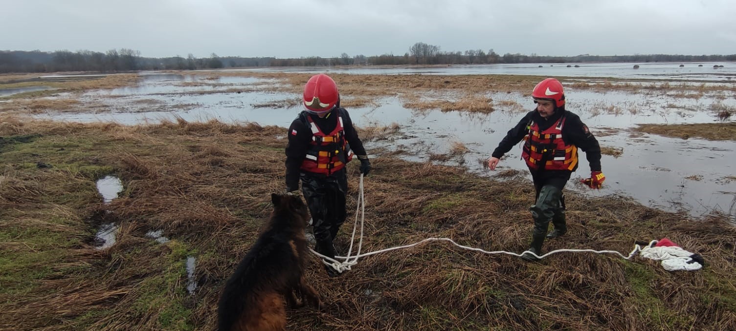 Strażacy uratowali psa uwięzionego na zalanych nieużytkach rolnych