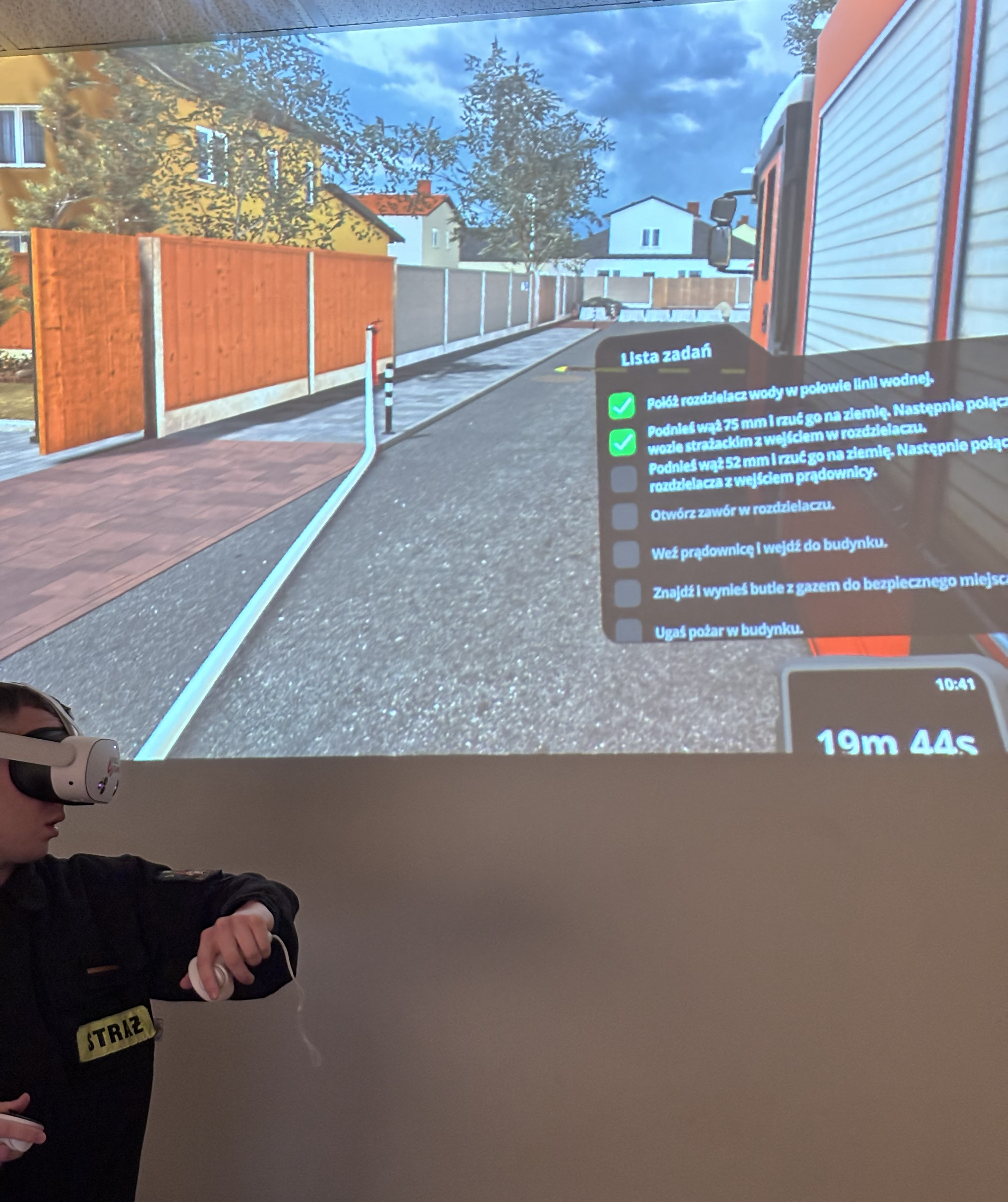 Zastosowanie gogli Meta Quest 3S umożliwiło stworzenie immersyjnego środowiska szkoleniowego bez konieczności angażowania dużych sił i środków. Instruktorzy mieli możliwość obserwowania przebiegu ćwiczeń w czasie rzeczywistym oraz omawiania podjętych decyzji po zakończeniu symulacji.