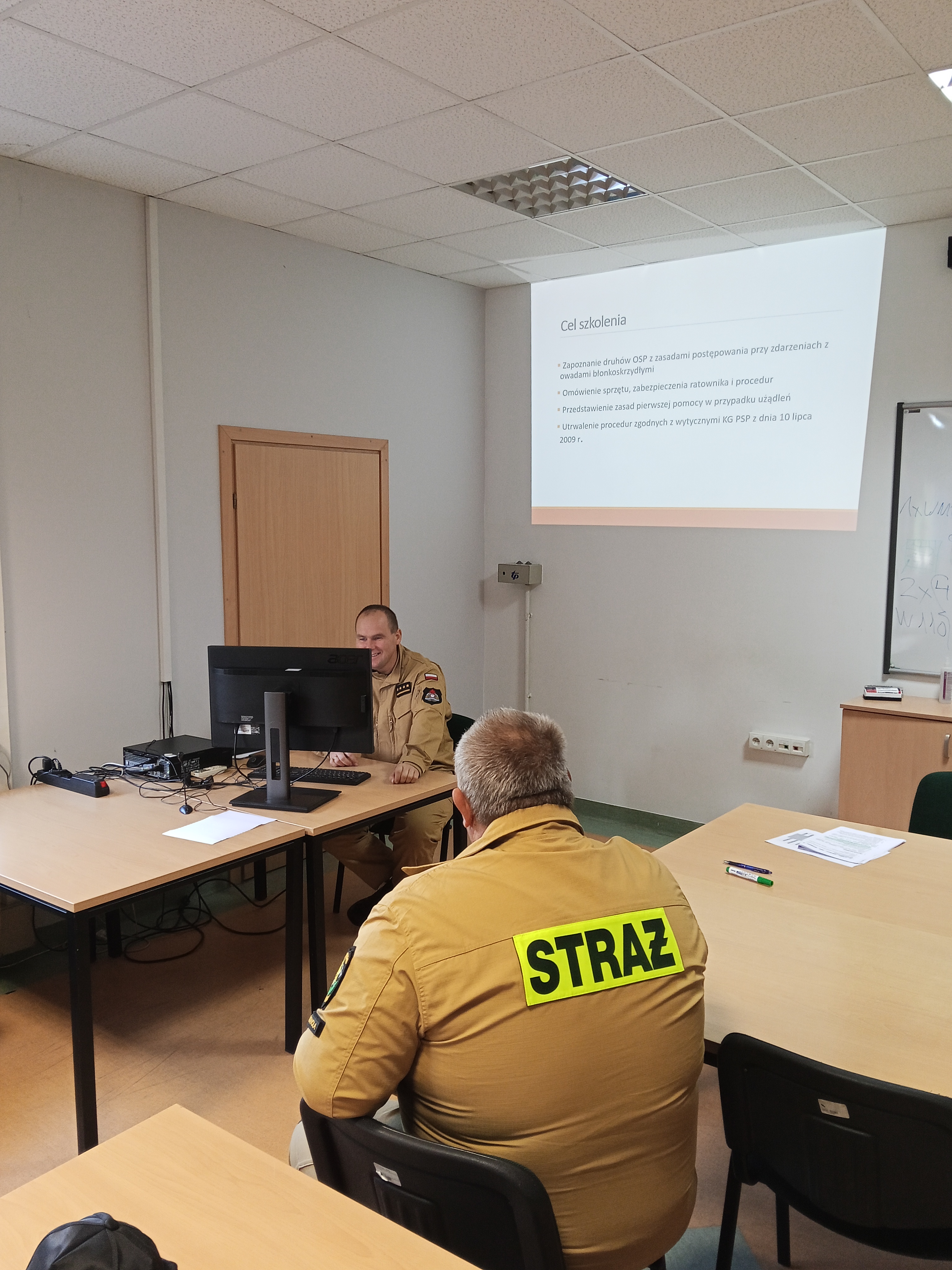 2 października 2025 roku w sali szkoleniowej Komendy Powiatowej Państwowej Straży Pożarnej w Busku-Zdroju odbyło się szkolenie dla druhów z jednostek Ochotniczych Straży Pożarnych włączonych do Krajowego Systemu Ratowniczo-Gaśniczego powiatu buskiego na temat przestrzegania zasad BHP i procedur podczas działań ratowniczych związanych z owadami błonkoskrzydłymi. Uczestnikom szkolenia przypomniano zasady przyjęcia zgłoszenia, jak należy zachować się po dojeździe na miejsce zdarzenia, jak powinny przebiegać działania ratownicze i jak powinno wyglądać zabezpieczenie ratowników. Na koniec zapoznano strażaków z procedurą medyczną w przypadku użądlenia przez owady błonkoskrzydłe.