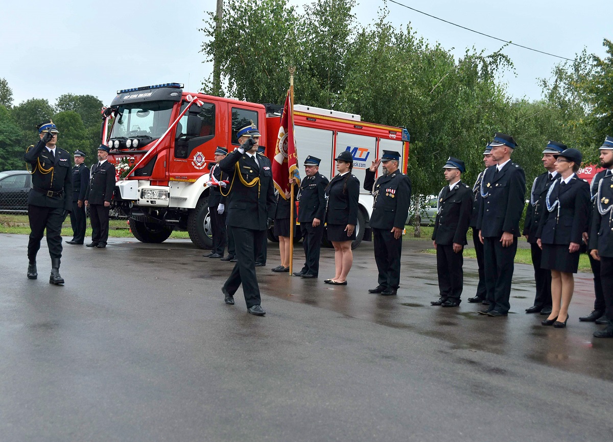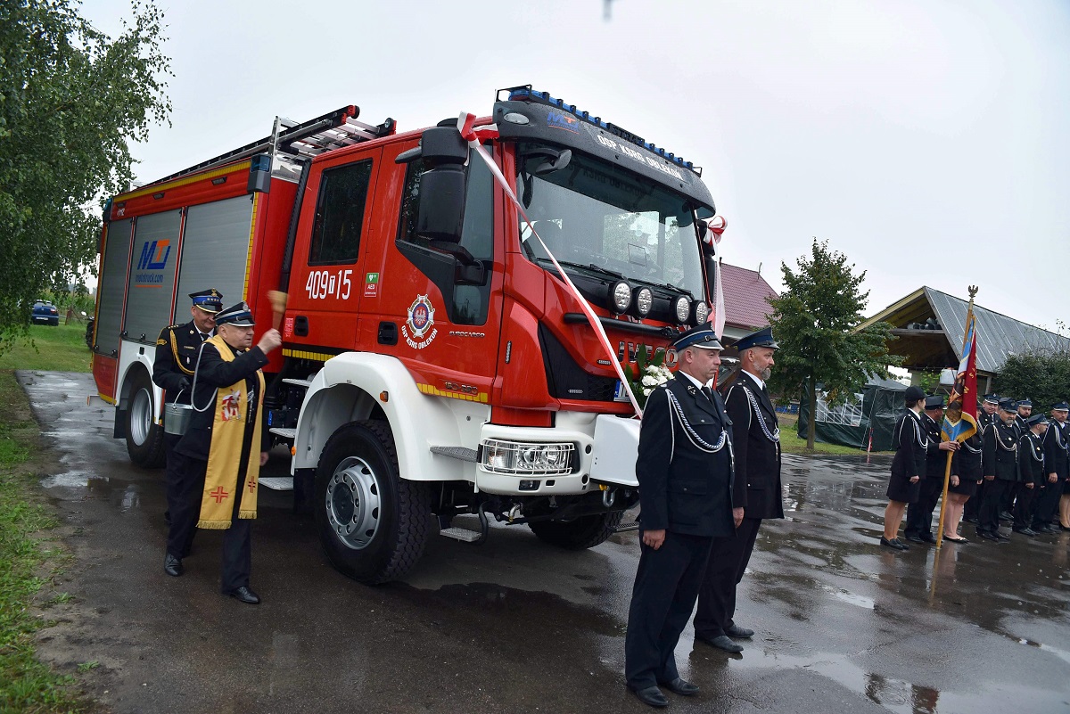 Uroczyste przekazanie nowego średniego samochodu ratowniczo-gaśniczego dla Ochotniczej Straży Pożarnej w Oblekoniu gm. Pacanów