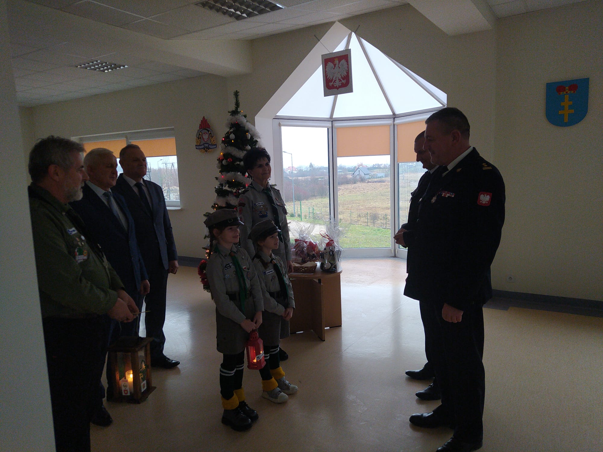 Komendant KP PSP przywitał zaproszonych gości, a następnie krótko podsumował mijający rok oraz złożył wszystkim życzenia świąteczne.