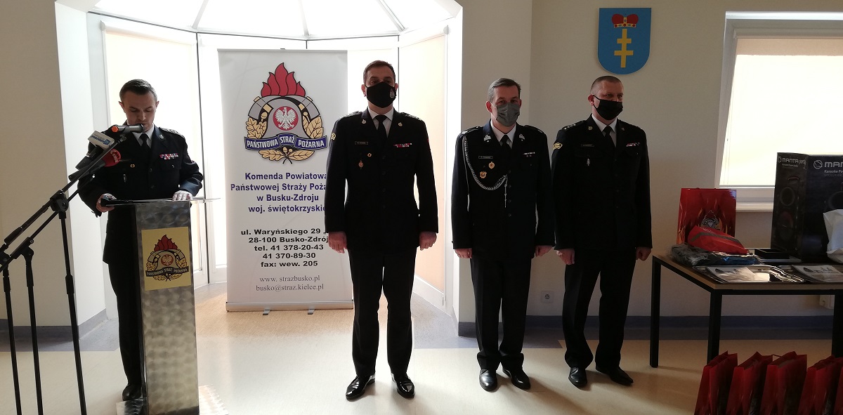 Na wstępie komendant powiatowy PSP w Busku-Zdroju st. bryg. Artur Brachowicz powitał przybył gości w osobach: świętokrzyskiego komendanta wojewódzkiego Państwowej Straży Pożarnej w Kielcach st. bryg. Krzysztofa Cioska, który objął patronat honorowy nad konkursem oraz druha Rafała Paradzieja prezesa Zarząd Oddziału Miejsko-Gminnego Związku Ochotniczych Straży Pożarnych RP w Busku-Zdroju oraz laureatów konkursu wraz z opiekunami.