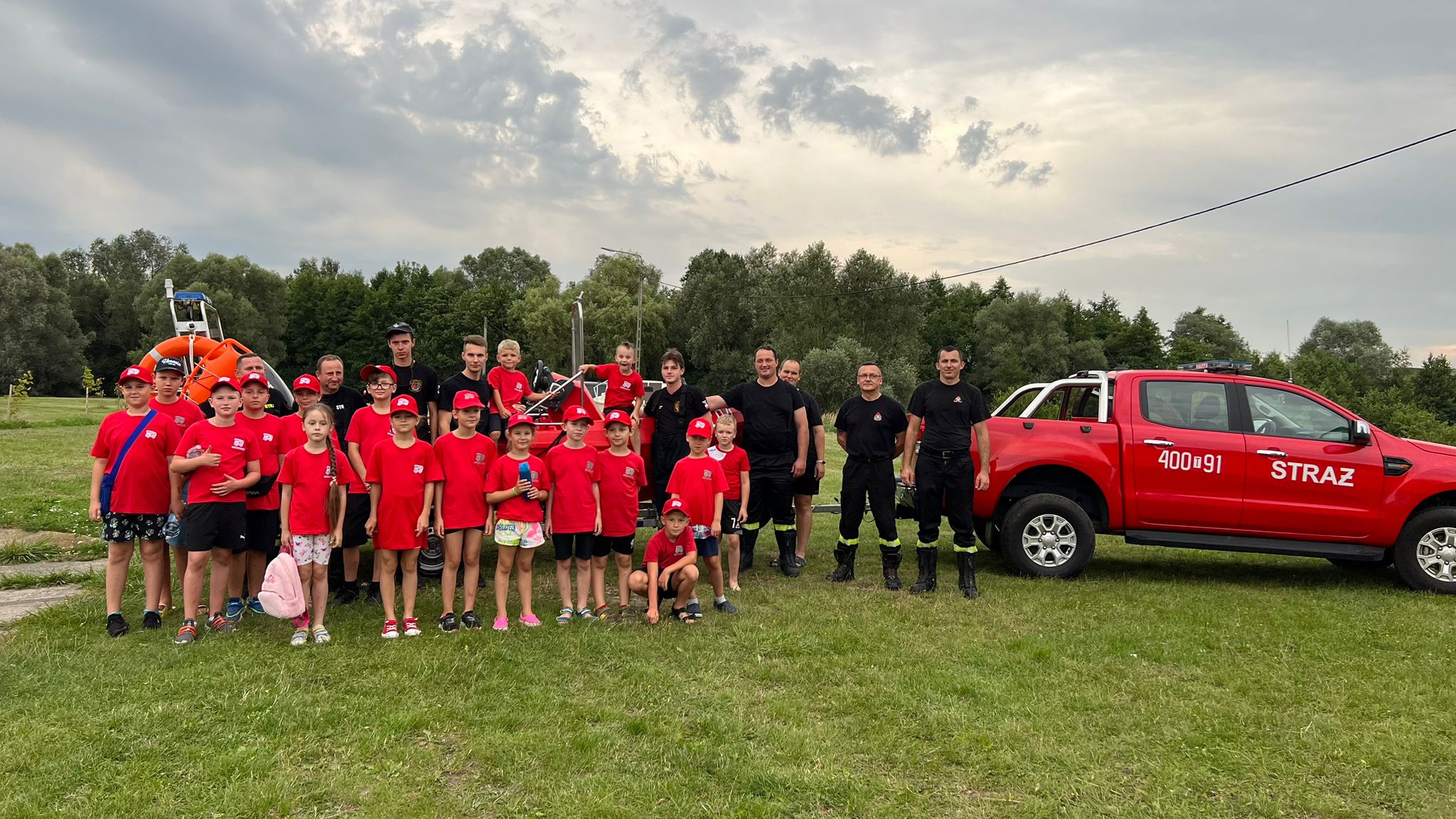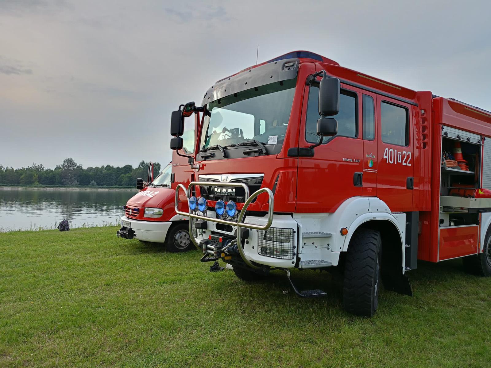Wspólne ćwiczenia JRG Busko-Zdrój z młodzieżową drużyną pożarniczą z Mikułowic oraz tamtejszą jednostką OSP na zbiorniku wodnym w Radzanowie
