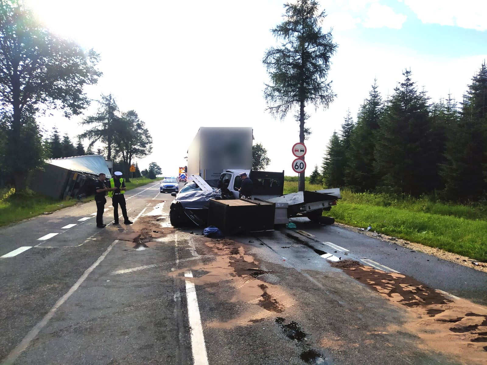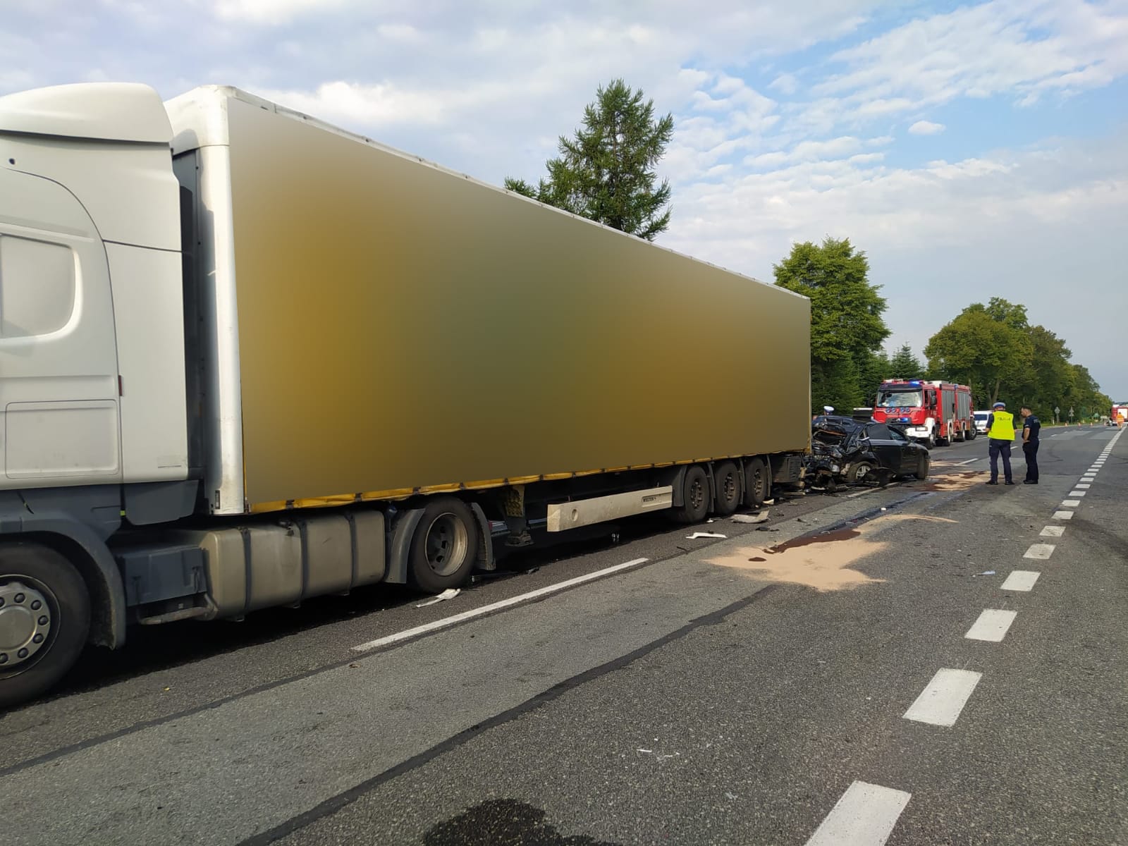 17 lipca 2023 roku o godz. 5:44 do Stanowiska Kierowania Komendanta Powiatowego Państwowej Straży Pożarnej w Busku – Zdroju wpłynęło zgłoszenie o wypadku na drodze krajowej nr 73 w okolicy miejscowości Szczeglin ( po rozpoznaniu miejscowości Kwasów gm. Pacanów). Dyżurny do zdarzenia zadysponował zastępy z JRG PSP Busko-Zdrój oraz jednostki Ochotniczej Straży Pożarnej w KSRG z Pacanowa i Stopnicy. Przybyłe pierwsze na miejsce zdarzenia zastępy JOP zabezpieczyły miejsce akcji oraz przeprowadziły rozpoznanie podczas którego stwierdzono, że na pasie drogi znajdują się uszkodzone na skutek wypadku 3 pojazdy tj:. samochód ciężarowy z naczepą, samochód dostawczy i osobowy oraz samochód ciężarowy z naczepą w przydrożnym rowie. Wszystkie podróżujące osoby (9 osób) opuściły pojazdy o własnych siłach. Działania JOP polegały na udzieleniu kwalifikowanej pierwszej pomocy (opatrywanie ran, stabilizacja odcinka szyjnego za pomocą kołnierza) oraz pomocy ZRM w przetransportowaniu poszkodowanych do karetek pogotowia - łącznie 7 osób. Na miejsce akcji został zadysponowany śmigłowiec LPR, którym jedna z osób poszkodowanych została pilnie przetransportowana do szpitala natomiast pozostałe 6 osób poszkodowanych zostało przetransportowanych karetkami pogotowia do najbliższych szpitali. Jednocześnie odłączono akumulatory w uszkodzonych pojazdach oraz dokonano sorpcji rozlanych płynów eksploatacyjnych. Na czas prowadzonych działań droga krajowa nr 73 w miejscowości była zablokowana.